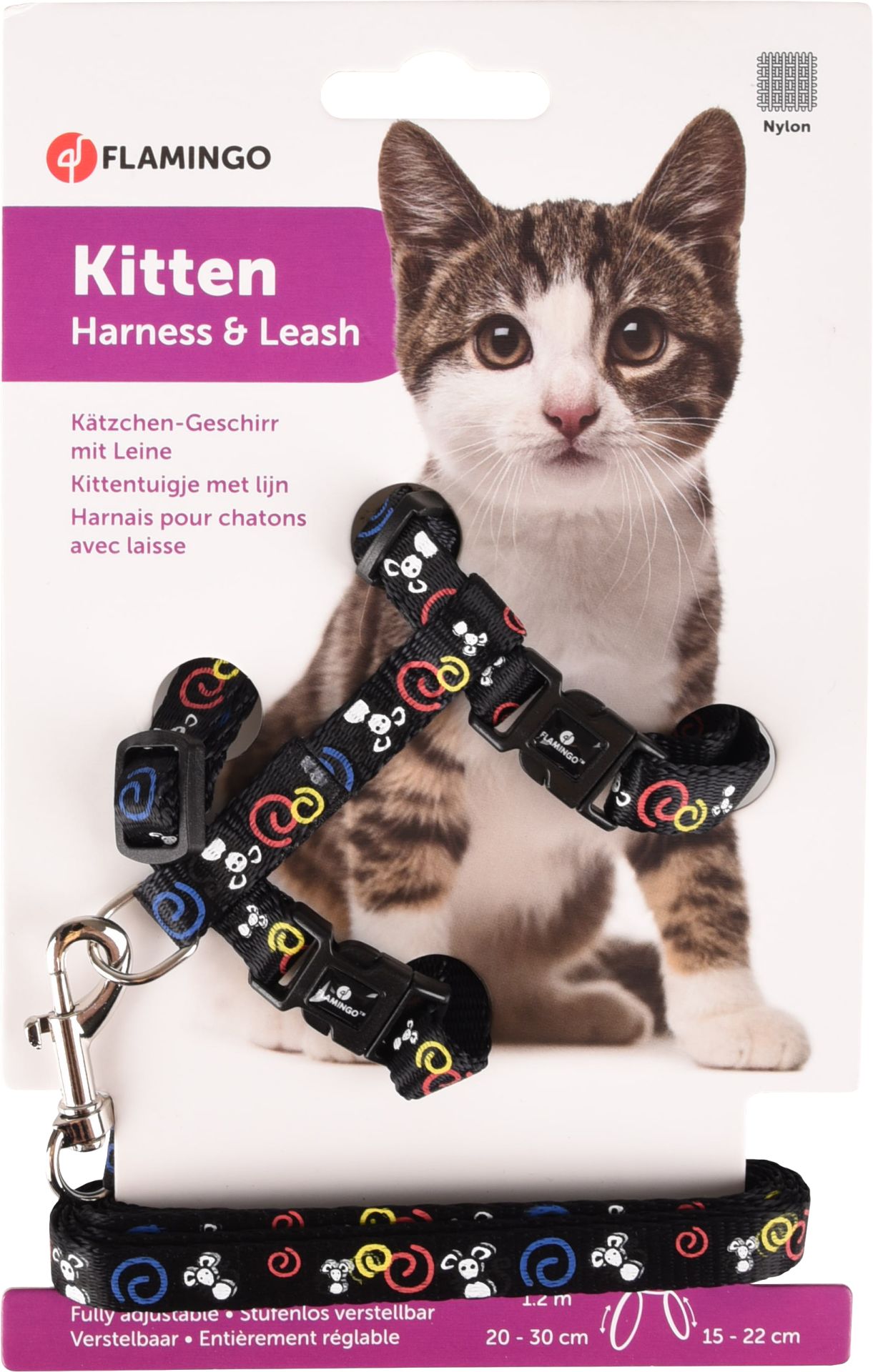 Flamingo Asp Kattentuig met Lijn - Zwart 120 cm