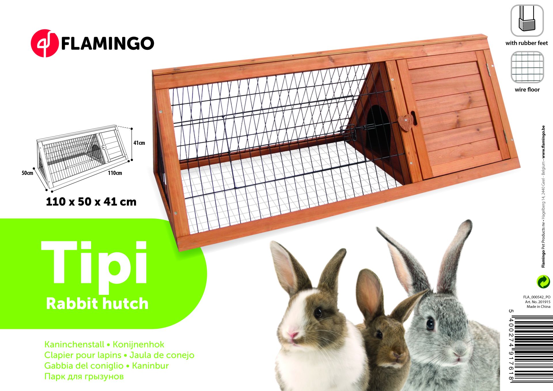 Flamingo Cavia - Of Konijnenhok Tipi Ren met Schuilhokje 110x40x50 cm