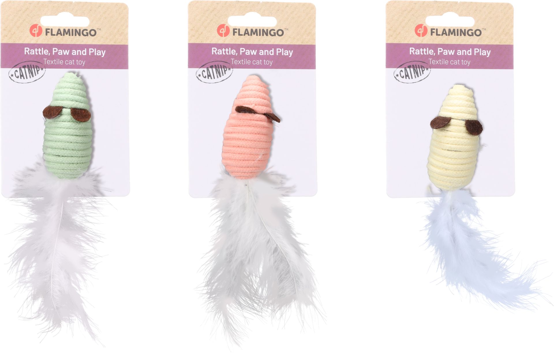 Flamingo Kattenspeelgoed Muis Poppy met Veren 16x3x3 cm