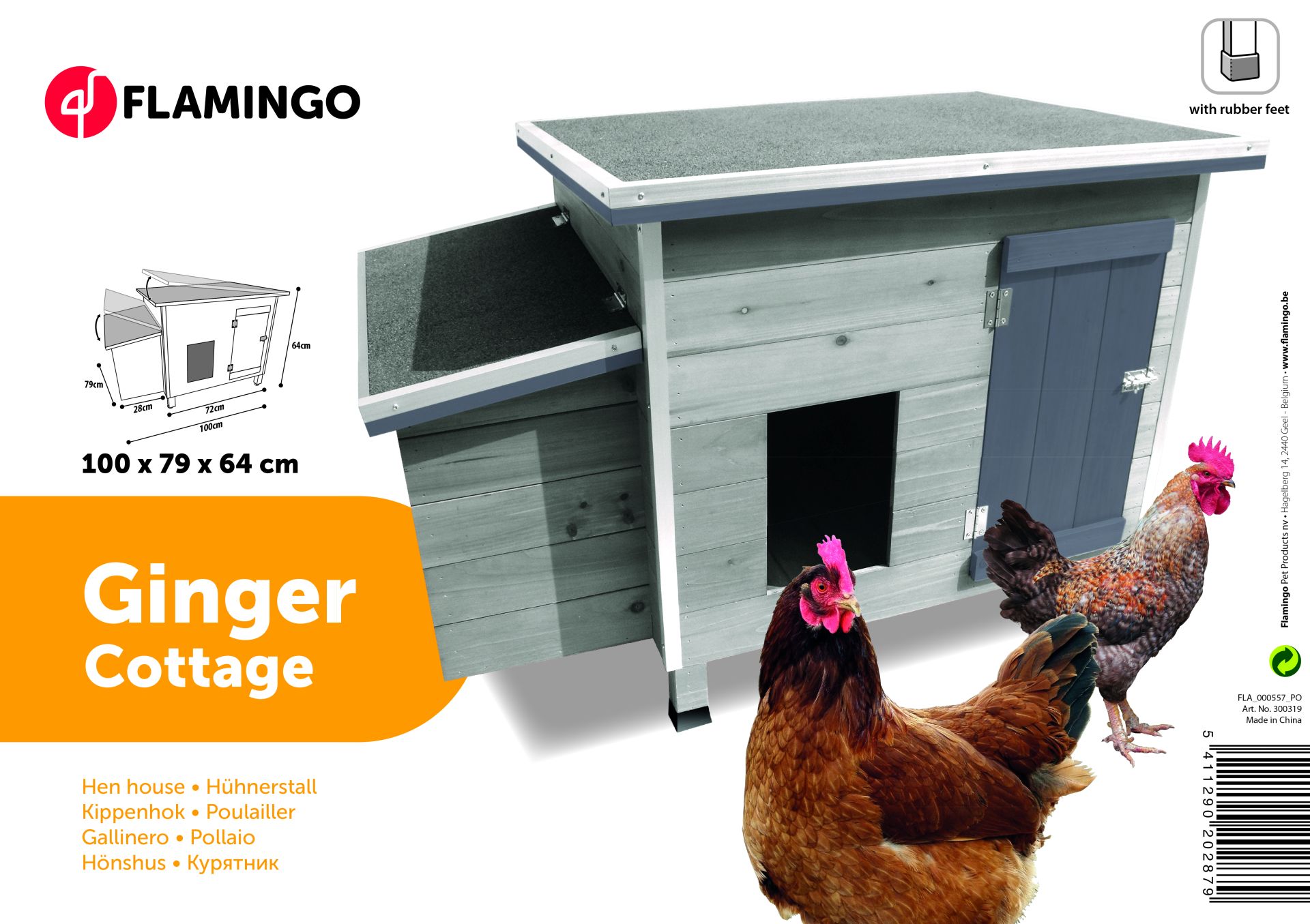 Flamingo Kippenhok Ginger Cottage Schuin Dak 101x79x64 cm - 35 kg