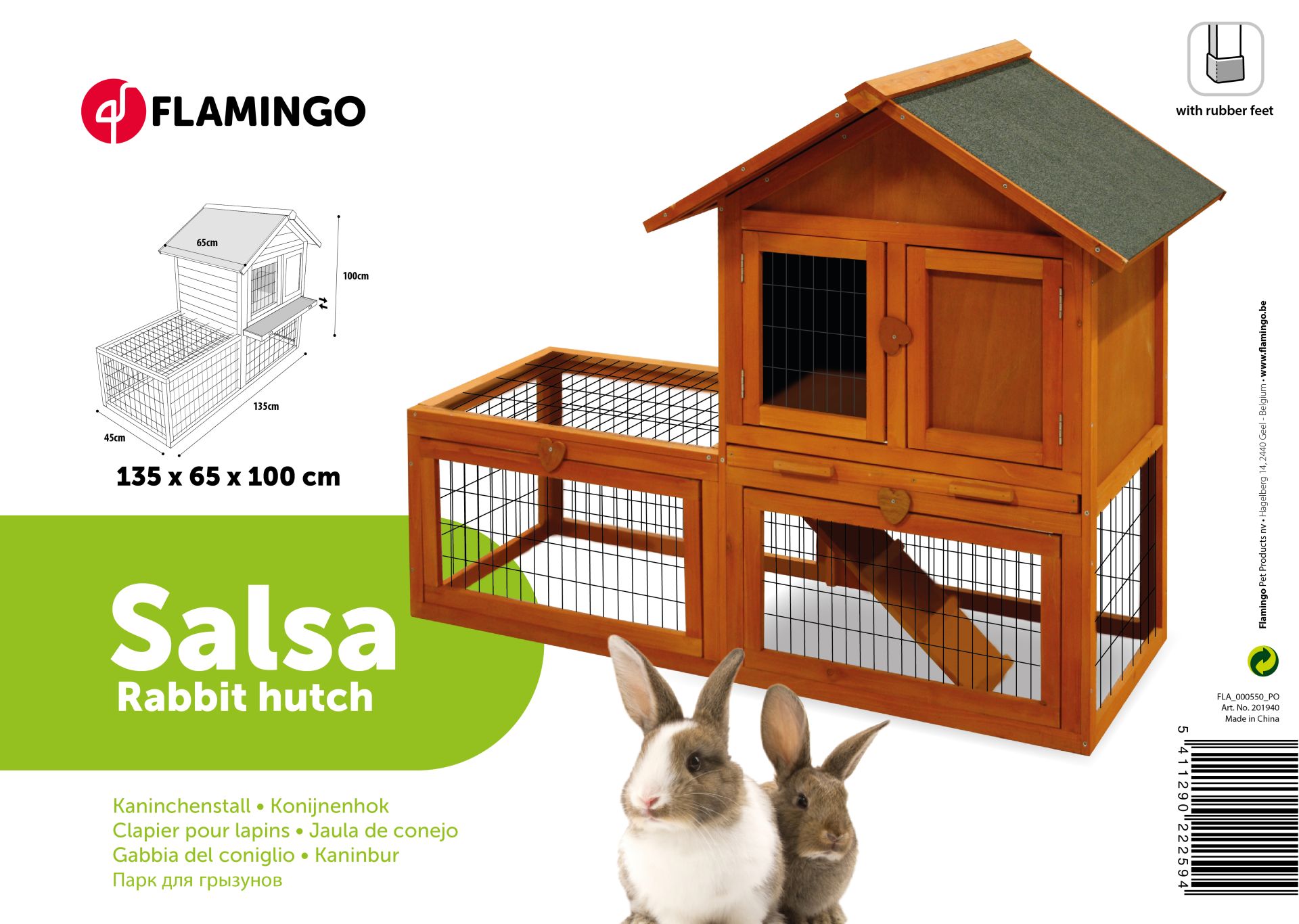Flamingo Konijnenhok Salsa 135x65x99 cm Met Ren Onderaan het Slaapgedeelte