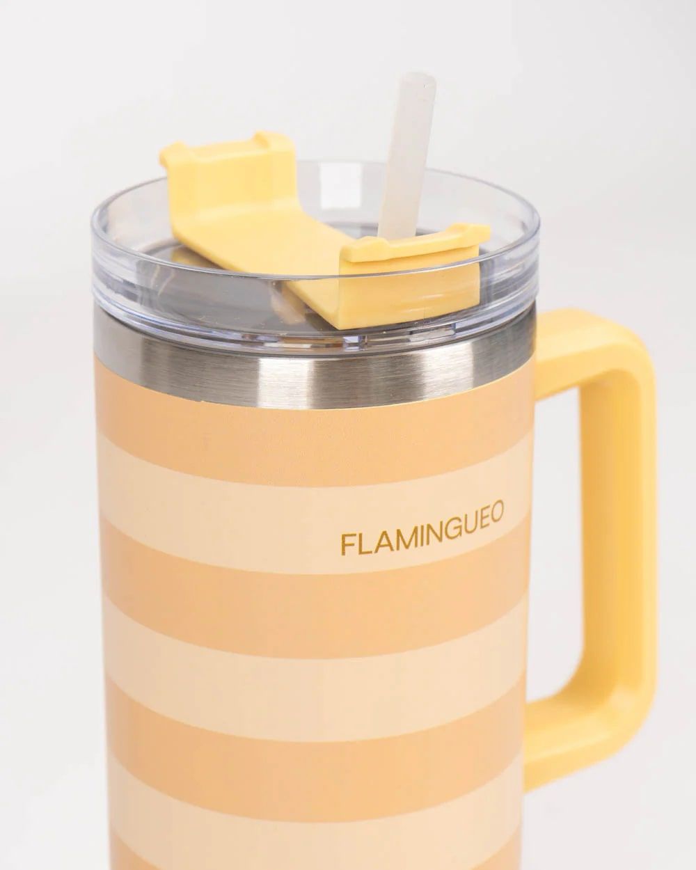 Flamingueo Isoleerbeker Chesire Amarillo 1.18l met Rietje - RVS - 10x27 cm