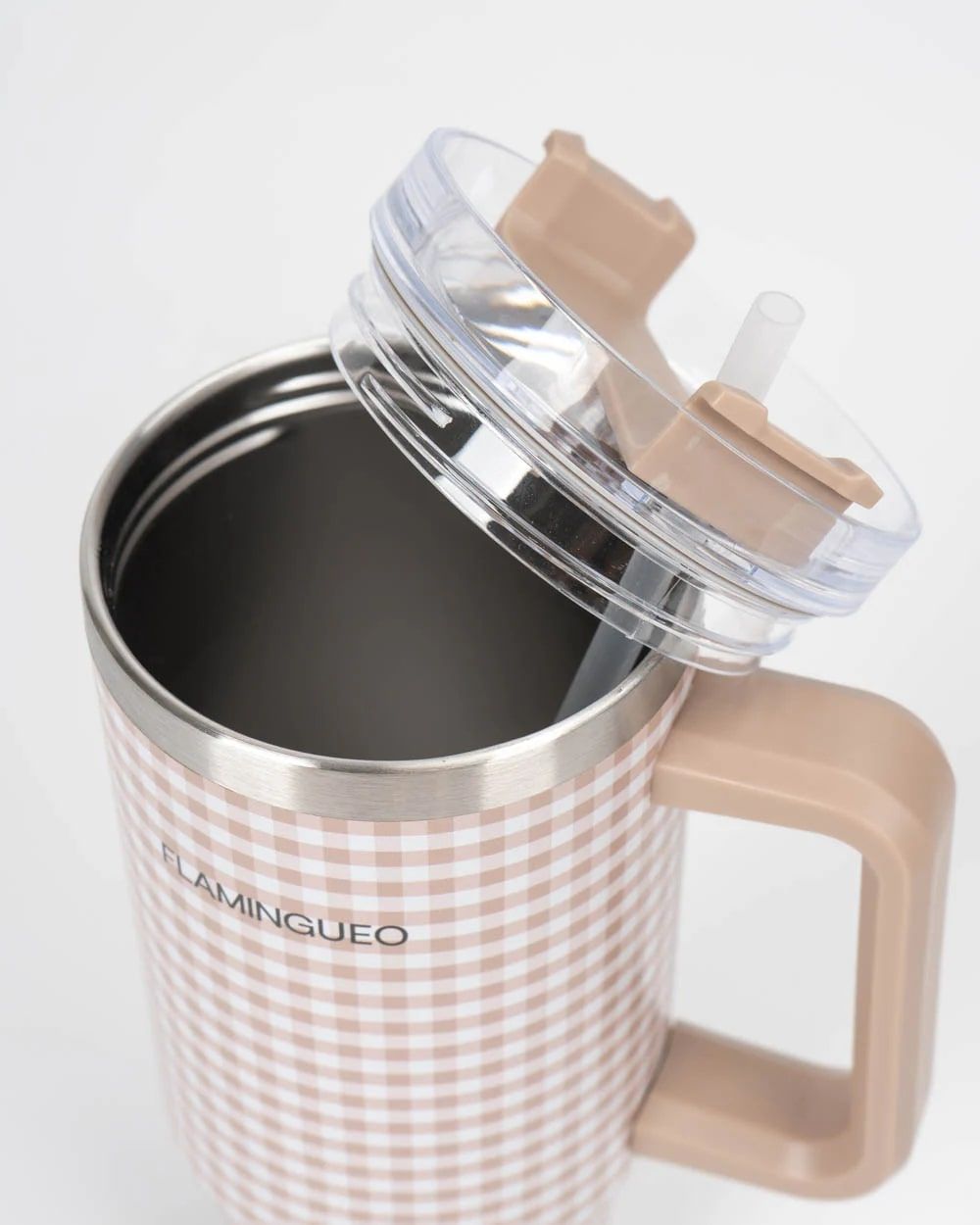 Flamingueo Isoleerbeker Dorothy Beige 1.18l met Rietje - RVS - 10x27 cm