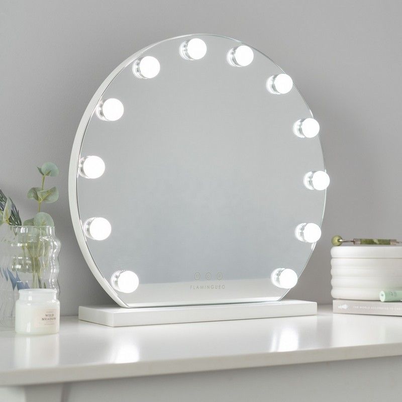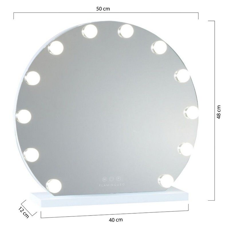 Flamingueo Spiegel Dream Round met 12 LED Lights - 48x50x12 cm - 3 Lichtstanden - Touch Knoppen