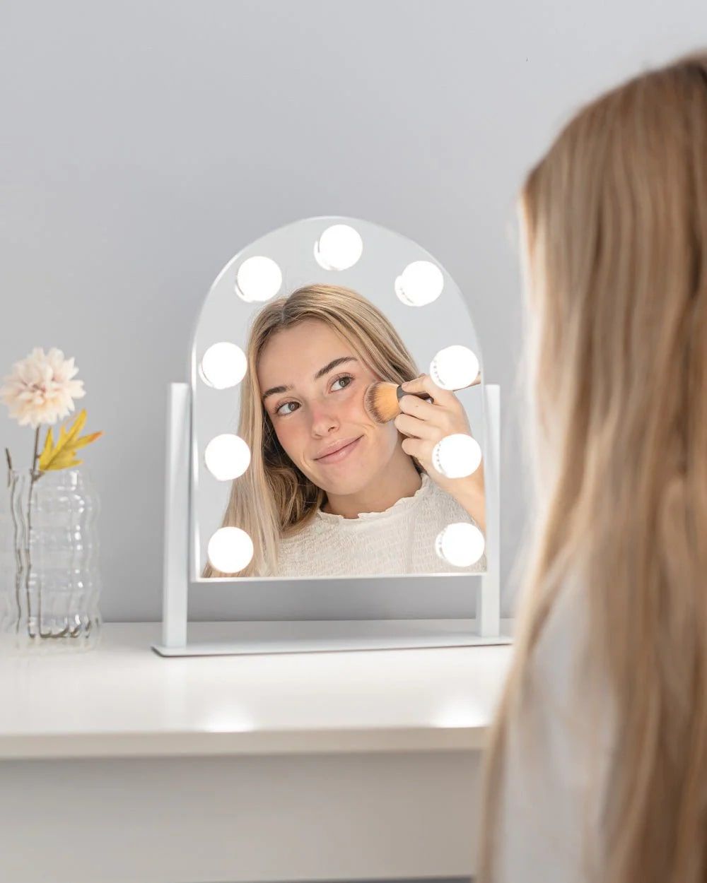 Flamingueo Spiegel Erin met 9 Hollywood LED Lights - 30.5x6x36 cm - 3 Lichtstanden - Touch Knoppen