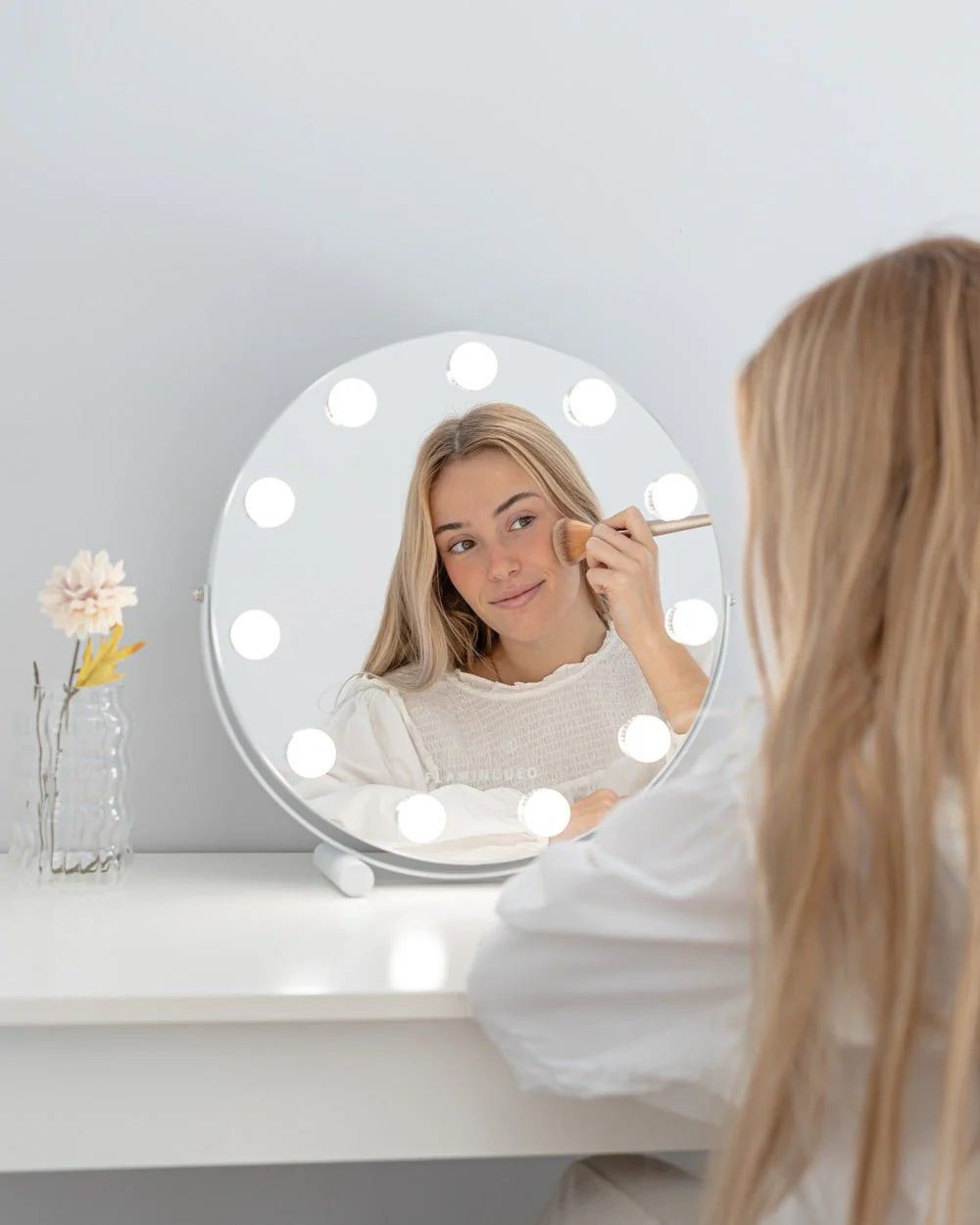 Flamingueo Spiegel Jasmine met 11 Hollywood LED Lights - 42.5x10x42 cm - 3 Lichtstanden - Touch Knoppen