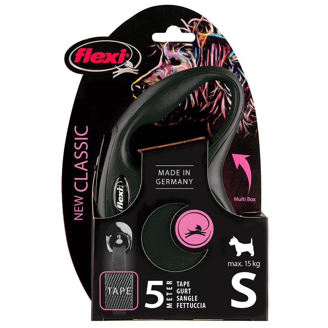 Flexi Leiband New Classic Lint S 5 m Zwart