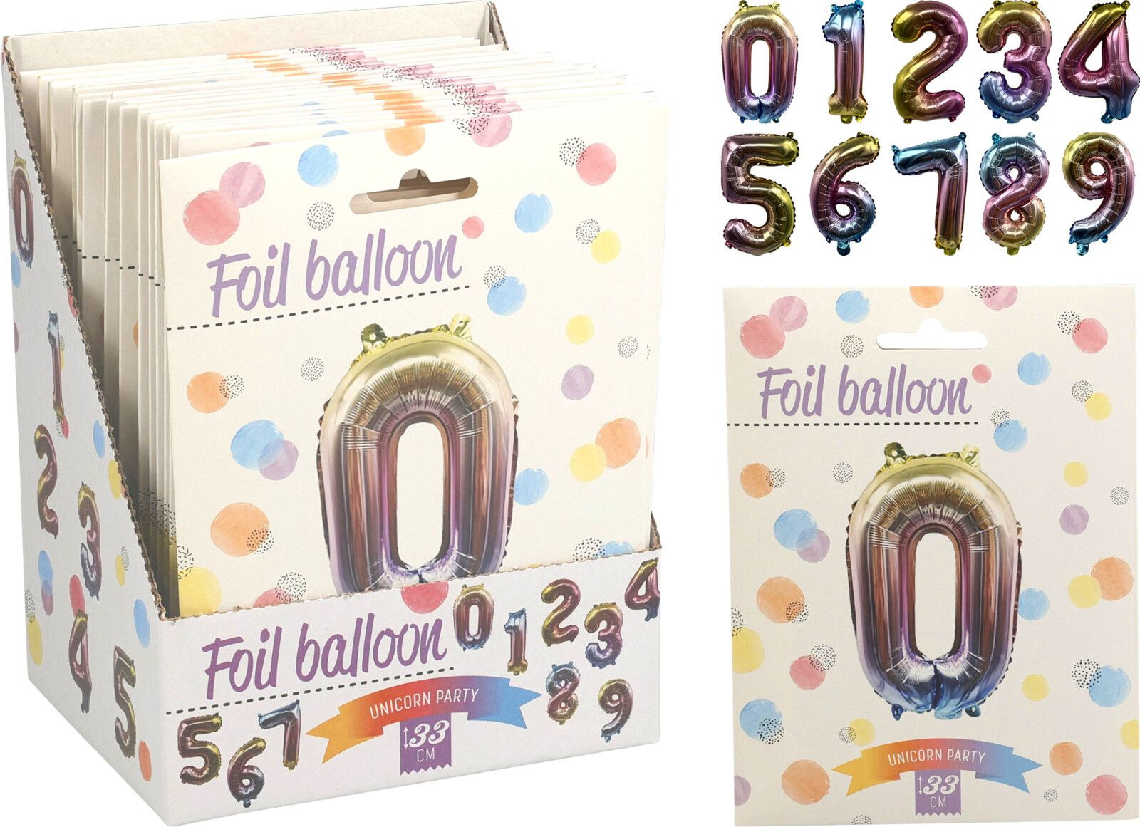 Folieballon Cijfers Multicolor 40cm - assorti - prijs per stuk