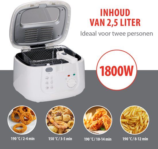 Frituurpan 2.5L - Friteuse 1800 Watt - Filterdeksel met Kijkvenster en Uitneembare Mand - Frietpan