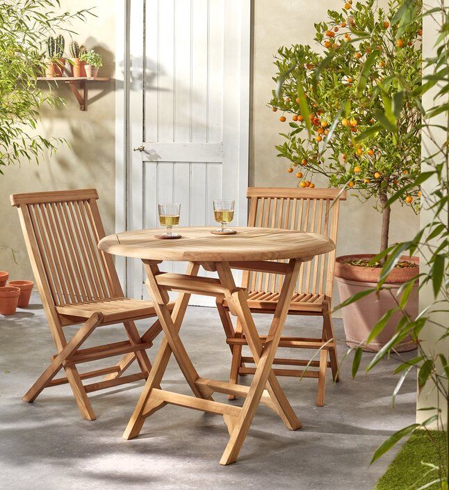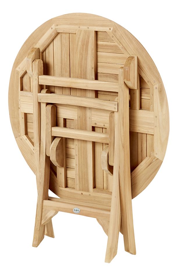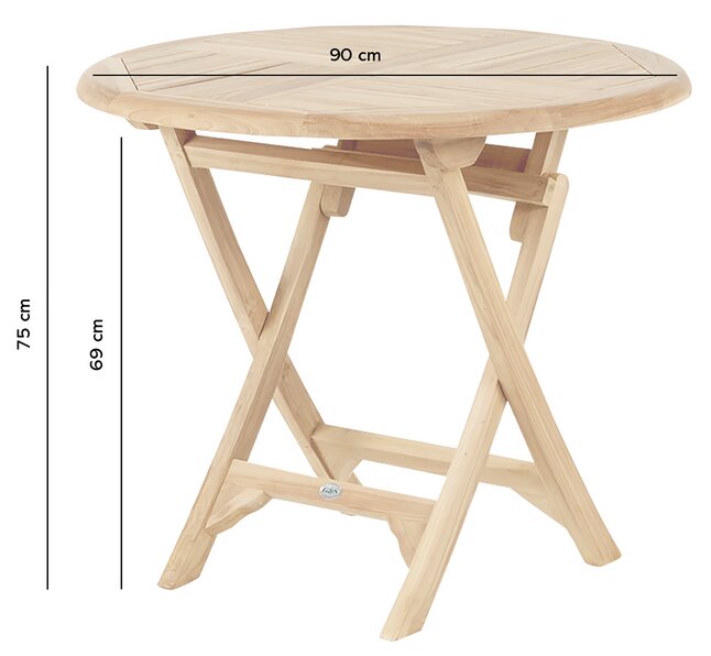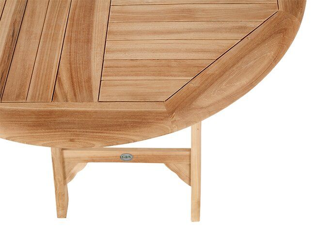 Ontdek onze G&S plooitafel Capri! Rond design met teakhout van 90 cm. Praktisch en stijlvol voor binnen en buiten. Bestel nu voor veelzijdig gebruik!