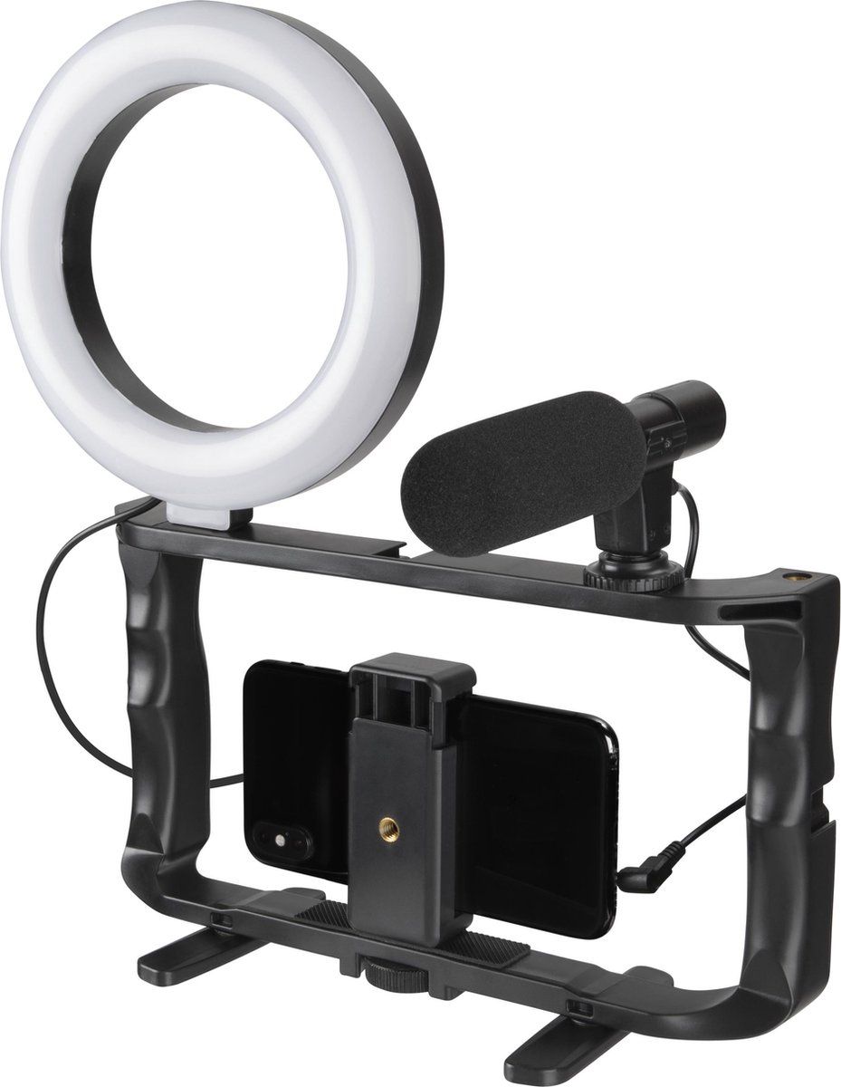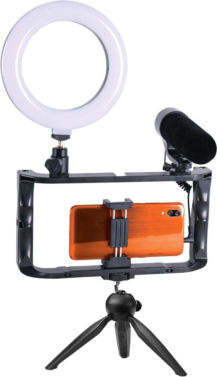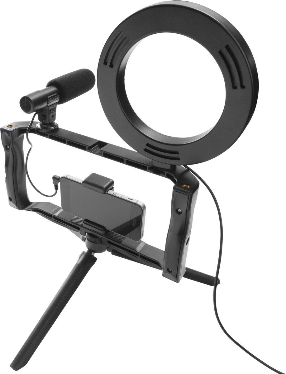 Gadget Monster Vlogging Kit Frame-Tripod -Led Ring-Microphone - Black - Gam-1022
