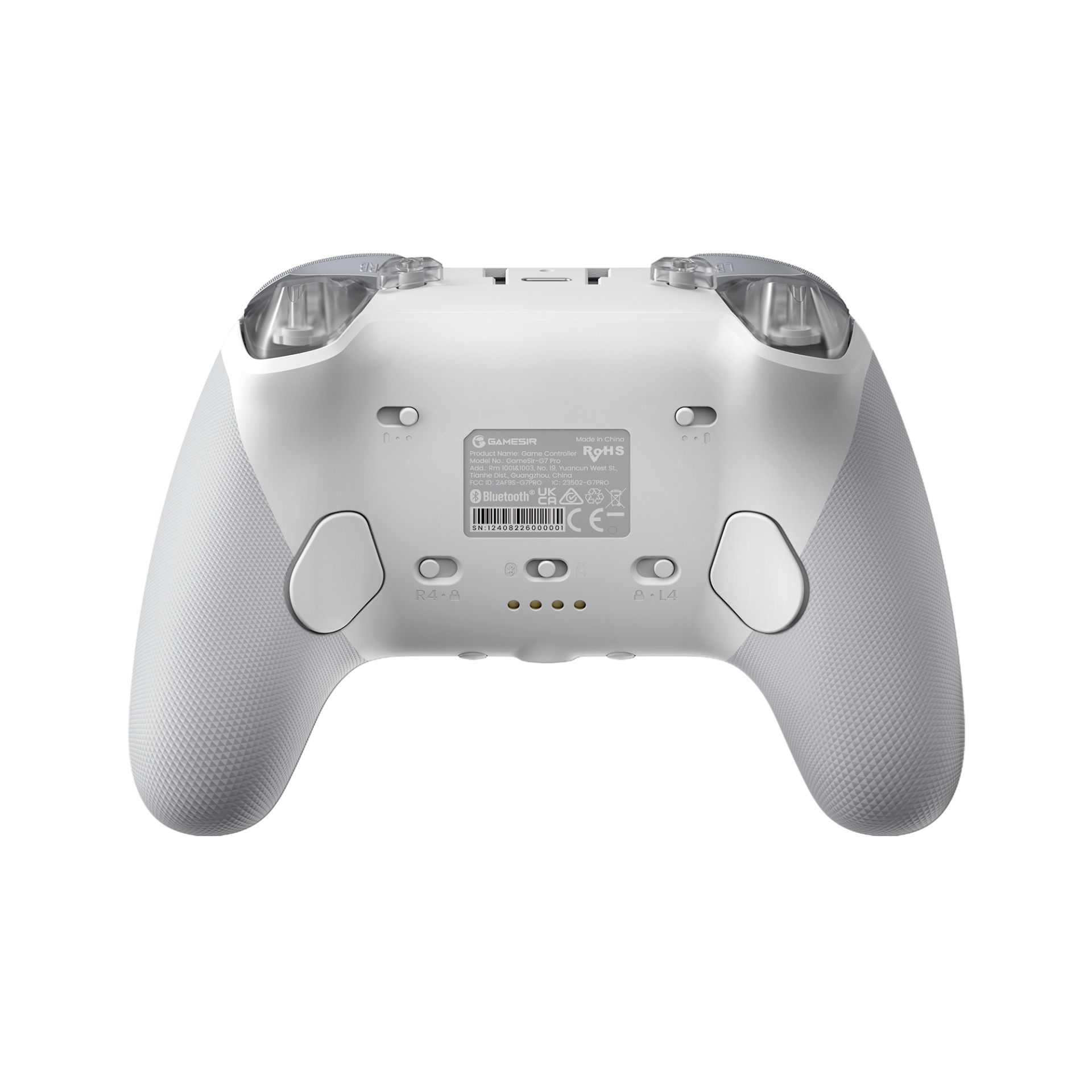 De G7 Pro heeft vier extra knoppen, waaronder twee mini-bumpers (R5/L5) en twee vergrendelbare achterknoppen (R4/L4), waarmee gamers hun besturing kunnen aanpassen.