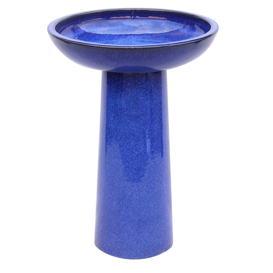 Geglazuurd Vogelbadje op Voet blauw Diam. x hoogte 44x62cm