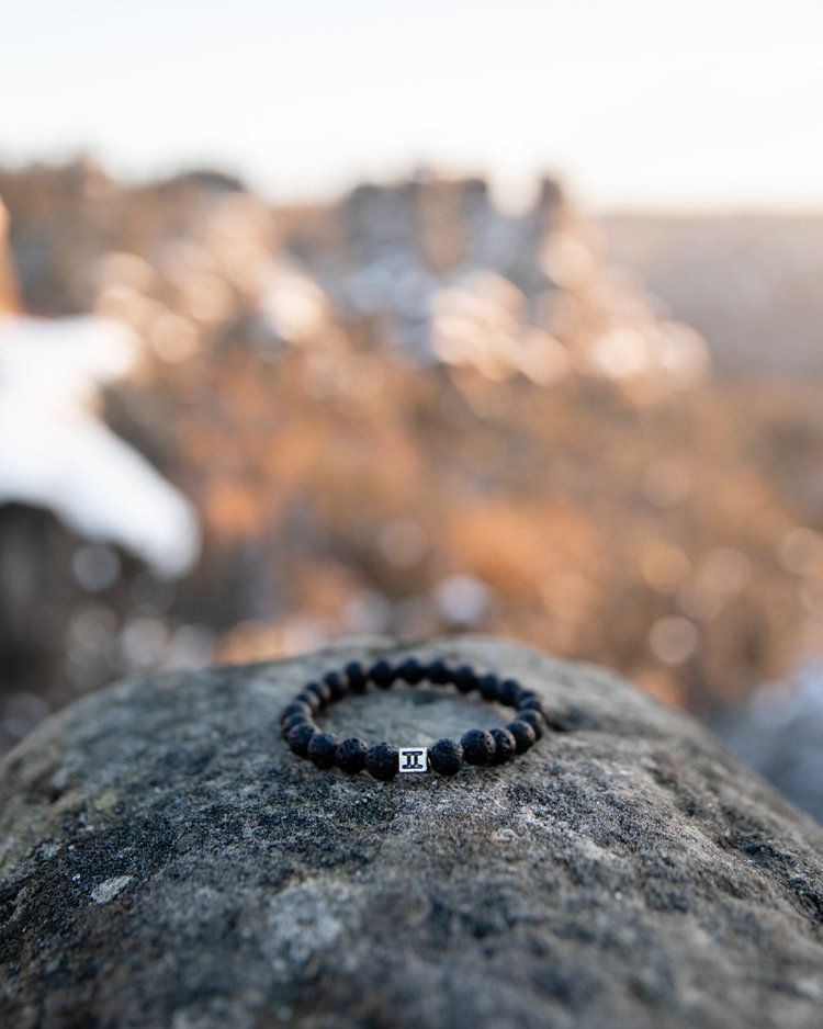 Gemini Armband Classic Natuursteen 8mm Black Lava - Lava Steen - Medium