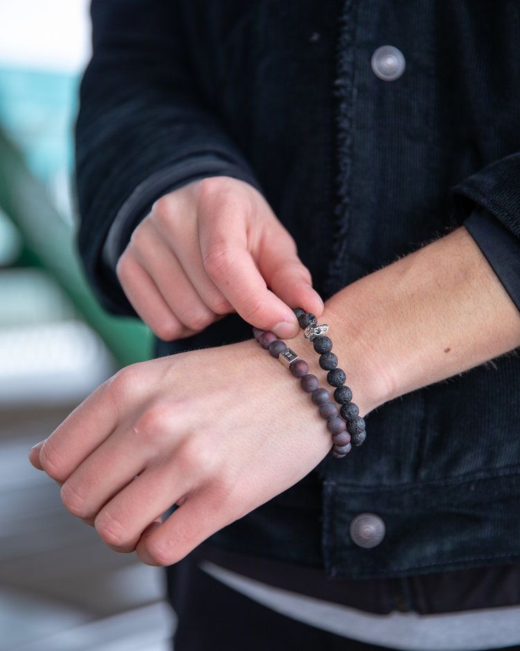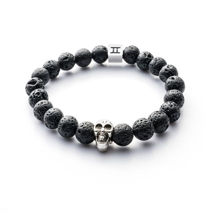Gemini Armband Classic Natuursteen 8mm Skull Black Lava - Lava Steen - Medium