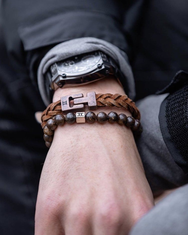 Gemini Armband Classic Natuursteen 8mm Skull Brown - Bronziet - Medium
