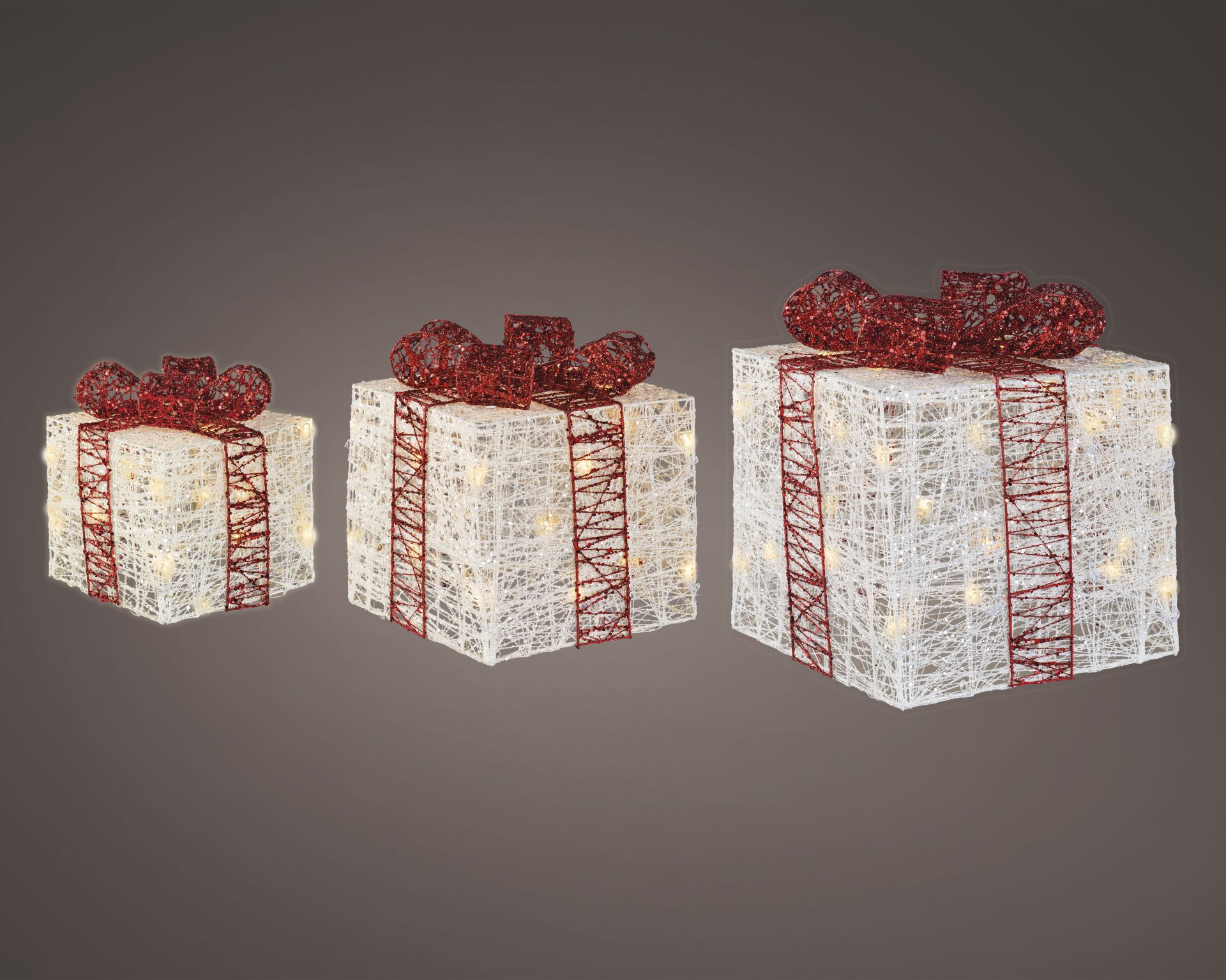 Geschenkdoos LED 3 stuks Warm Wit 14/20/30 Lights - 18/22/28 cm