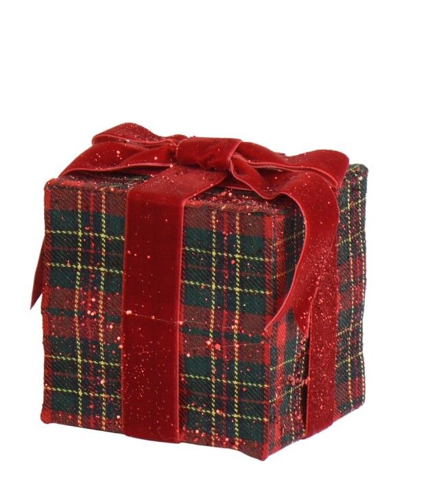 Geschenkdoos Rood Geruit met Fluwelen Strik 10x10x11.5 cm