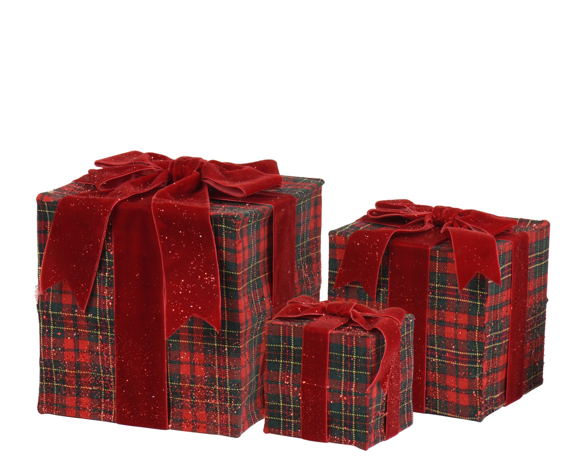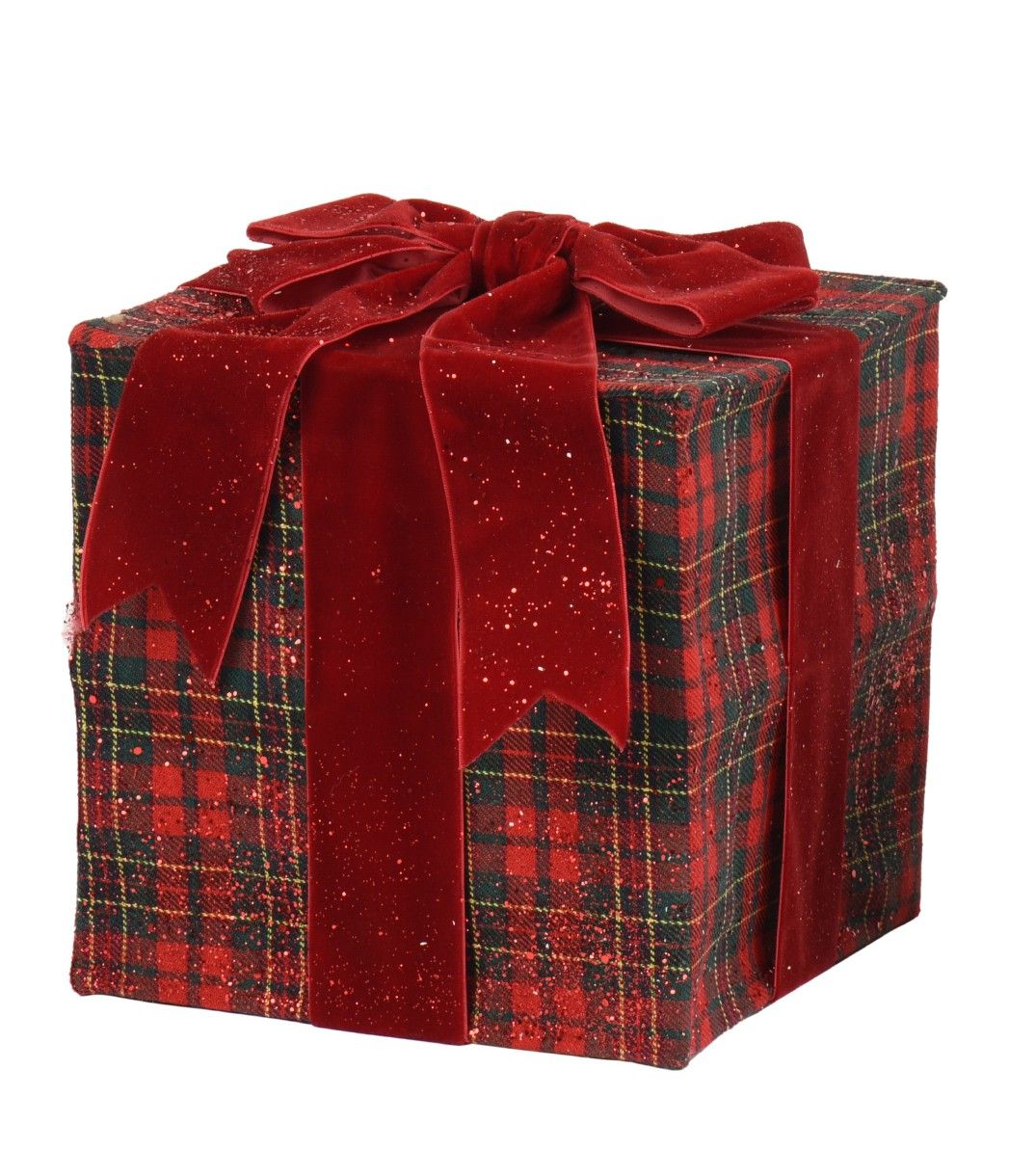 Geschenkdoos Rood Geruit met Fluwelen Strik 20x20x22 cm