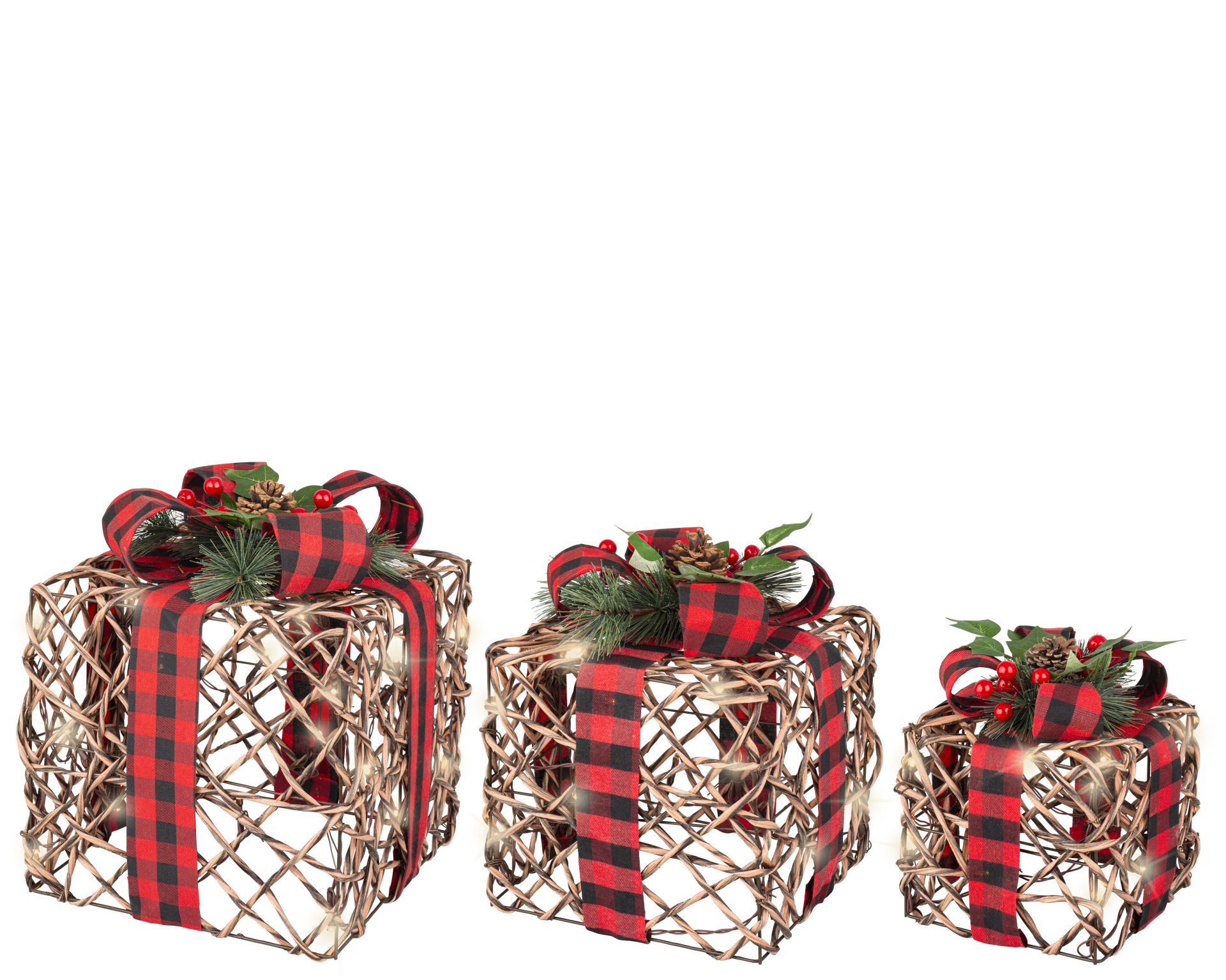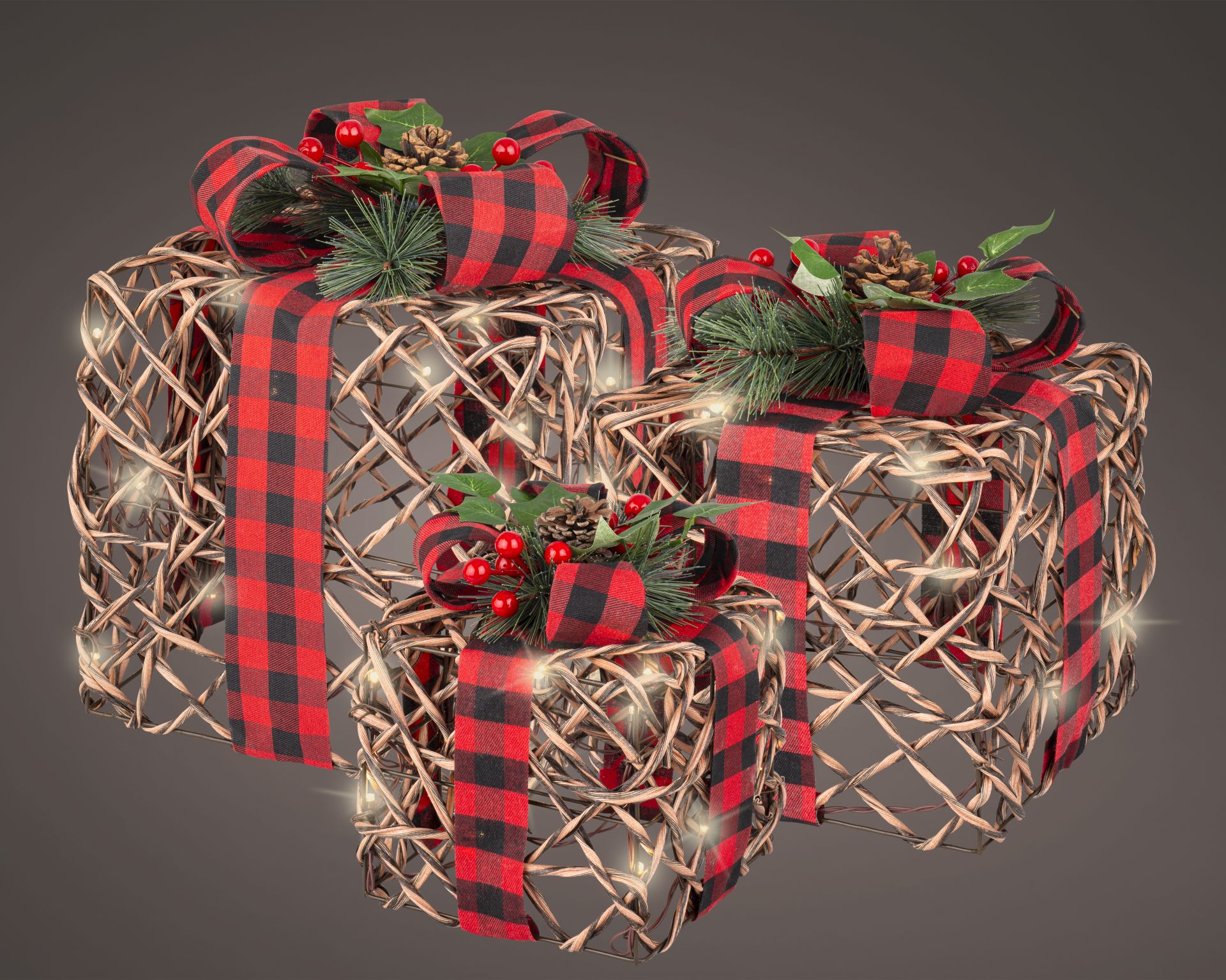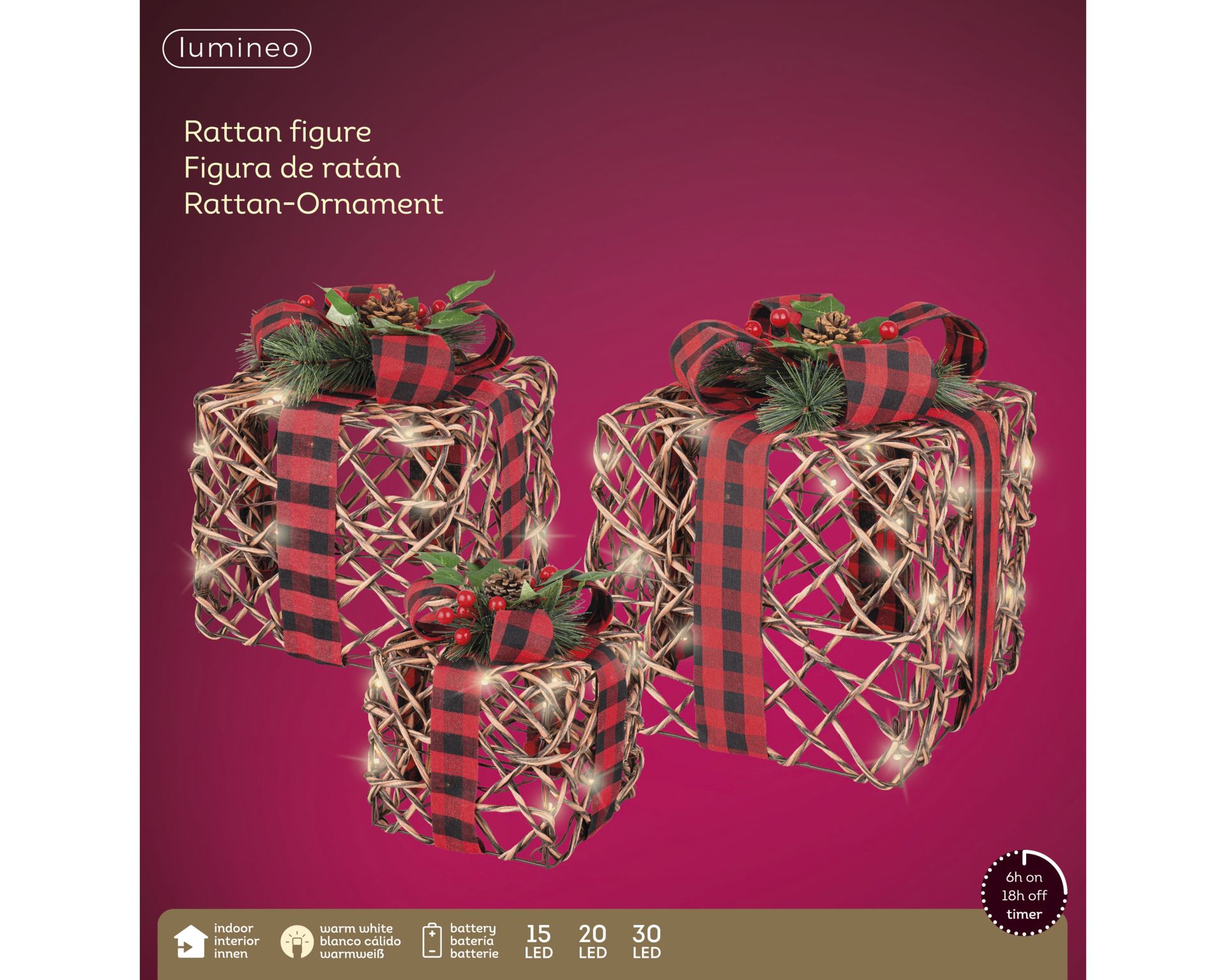 Geschenkdoos Rotan LED met Strik set 3 stuks - Warm Wit - 3 Groottes