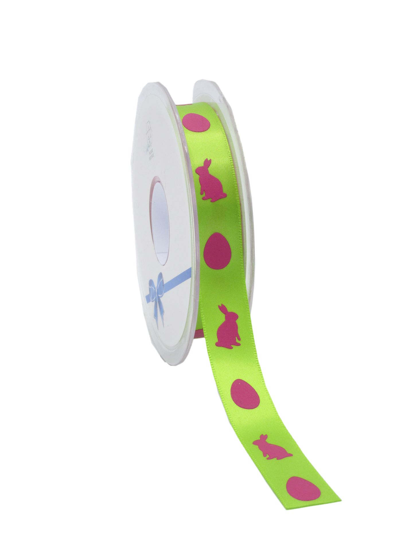 Geschenklint Happy Easter 15mm x 25m - Satijn - Groen