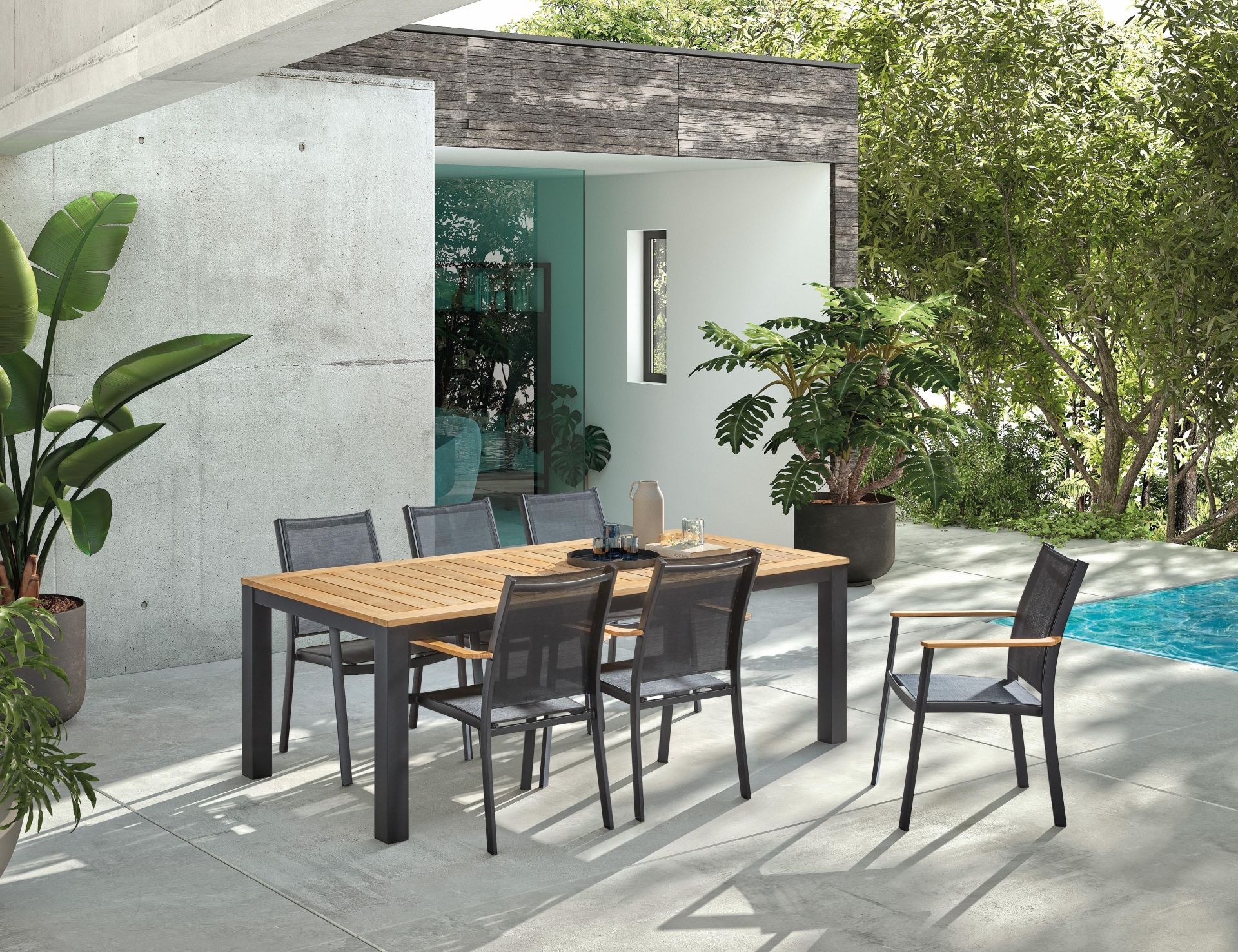 Gescova Bora Tuintafel 210 x 100 cm Teak tafelblad - zwart aluminium frame