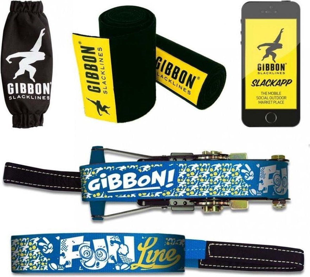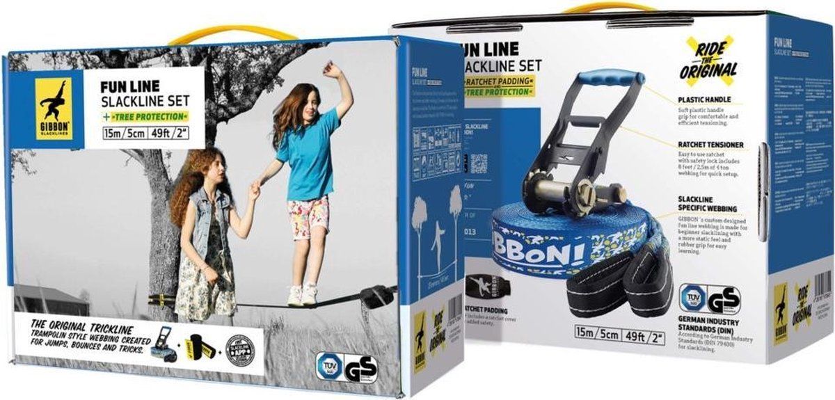 Gibbon Fun Line Slackline Treewear Set 15 meter - met boombescherming