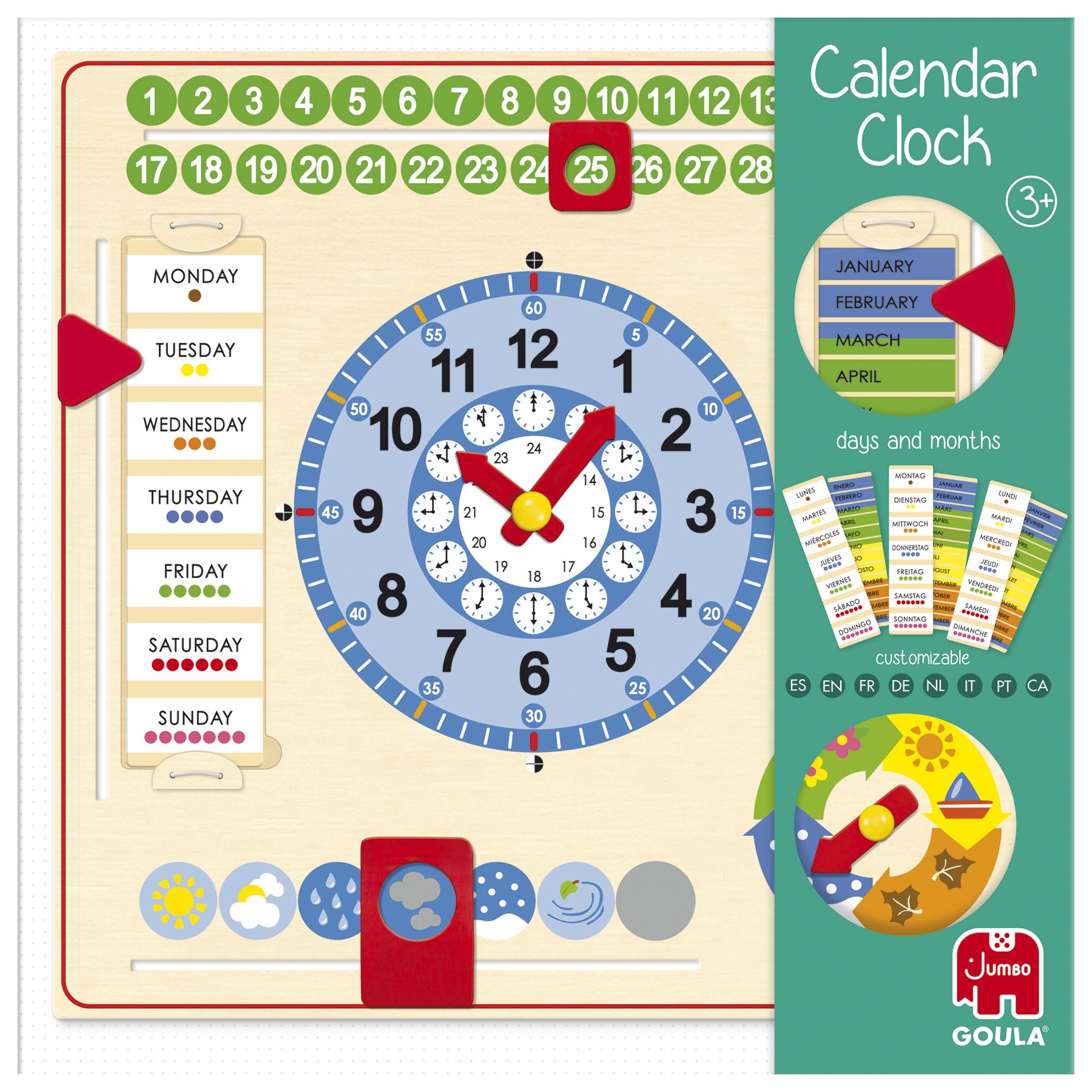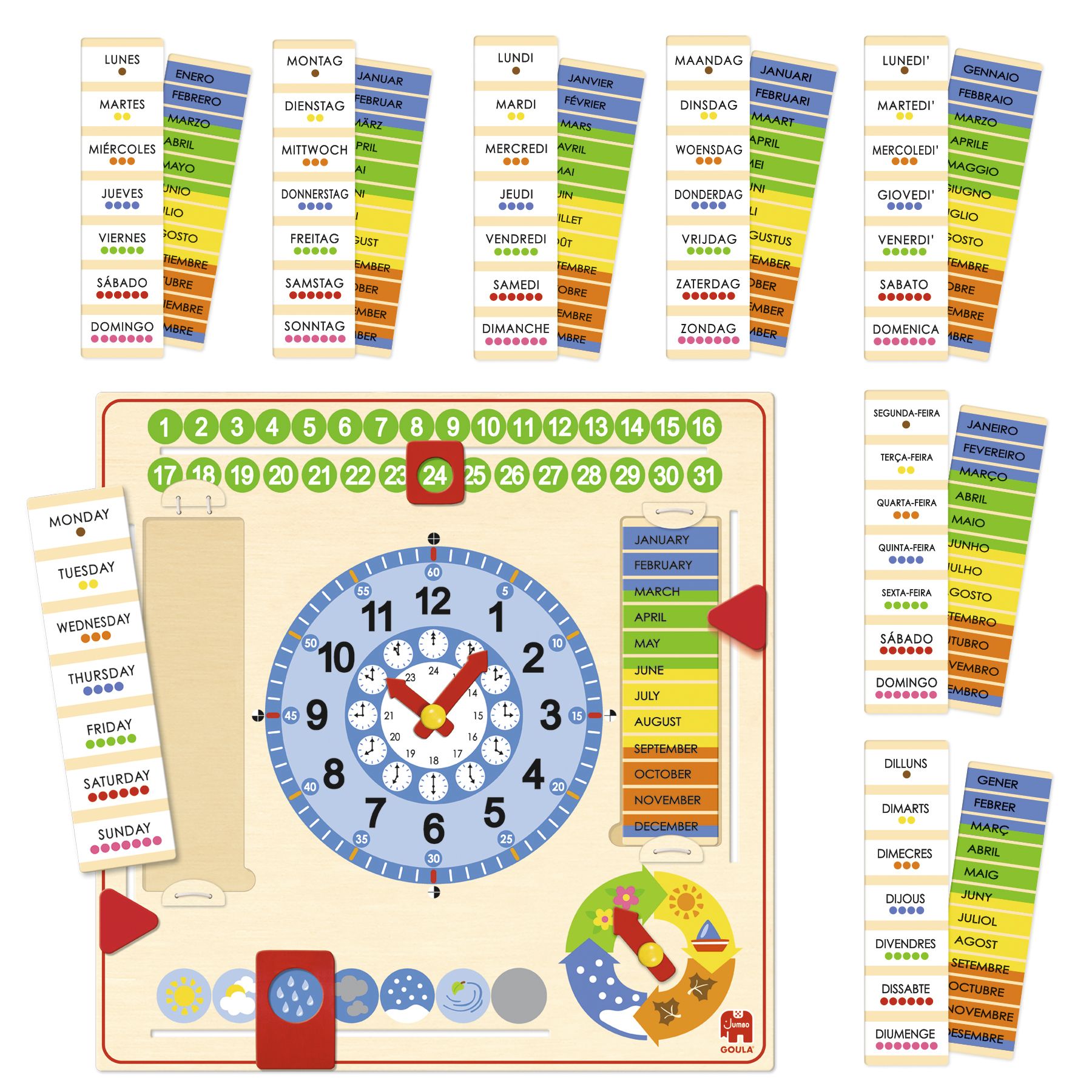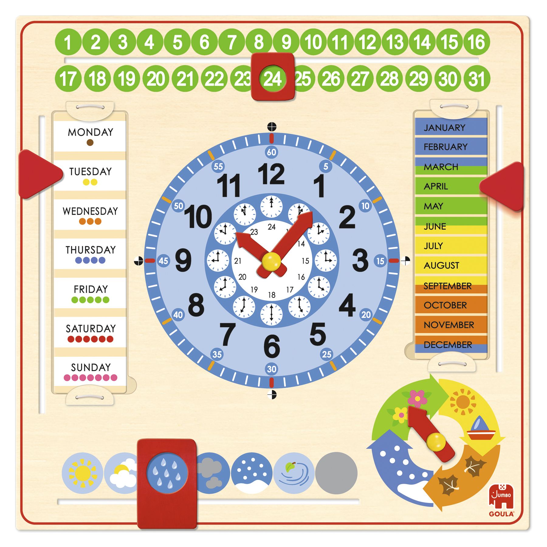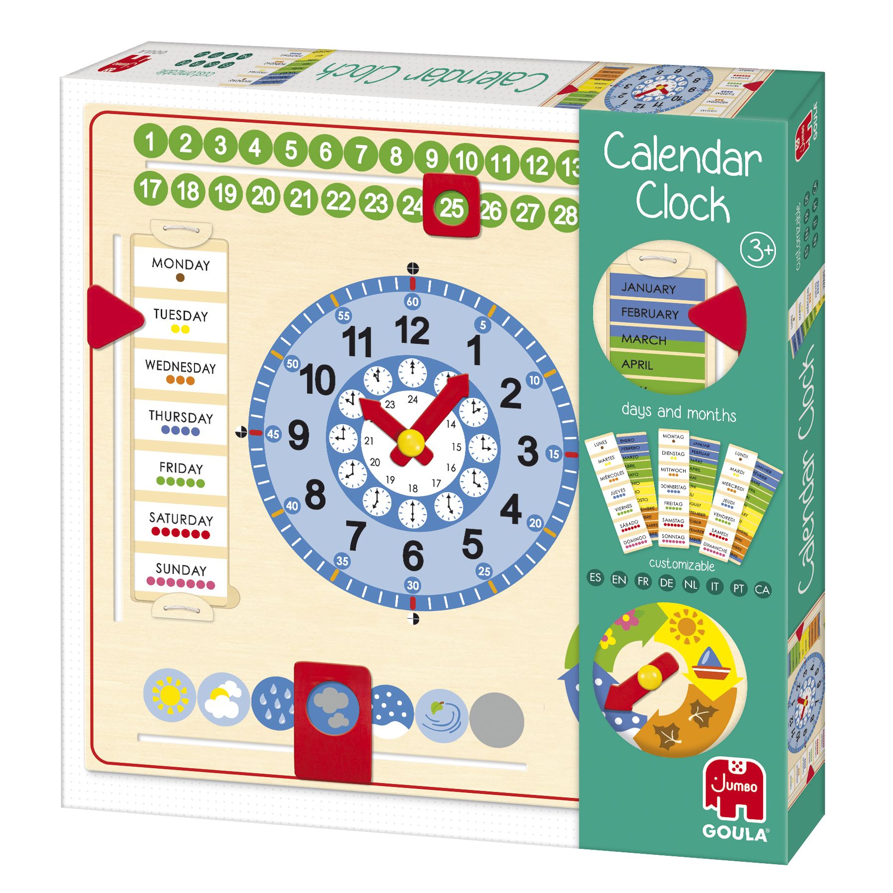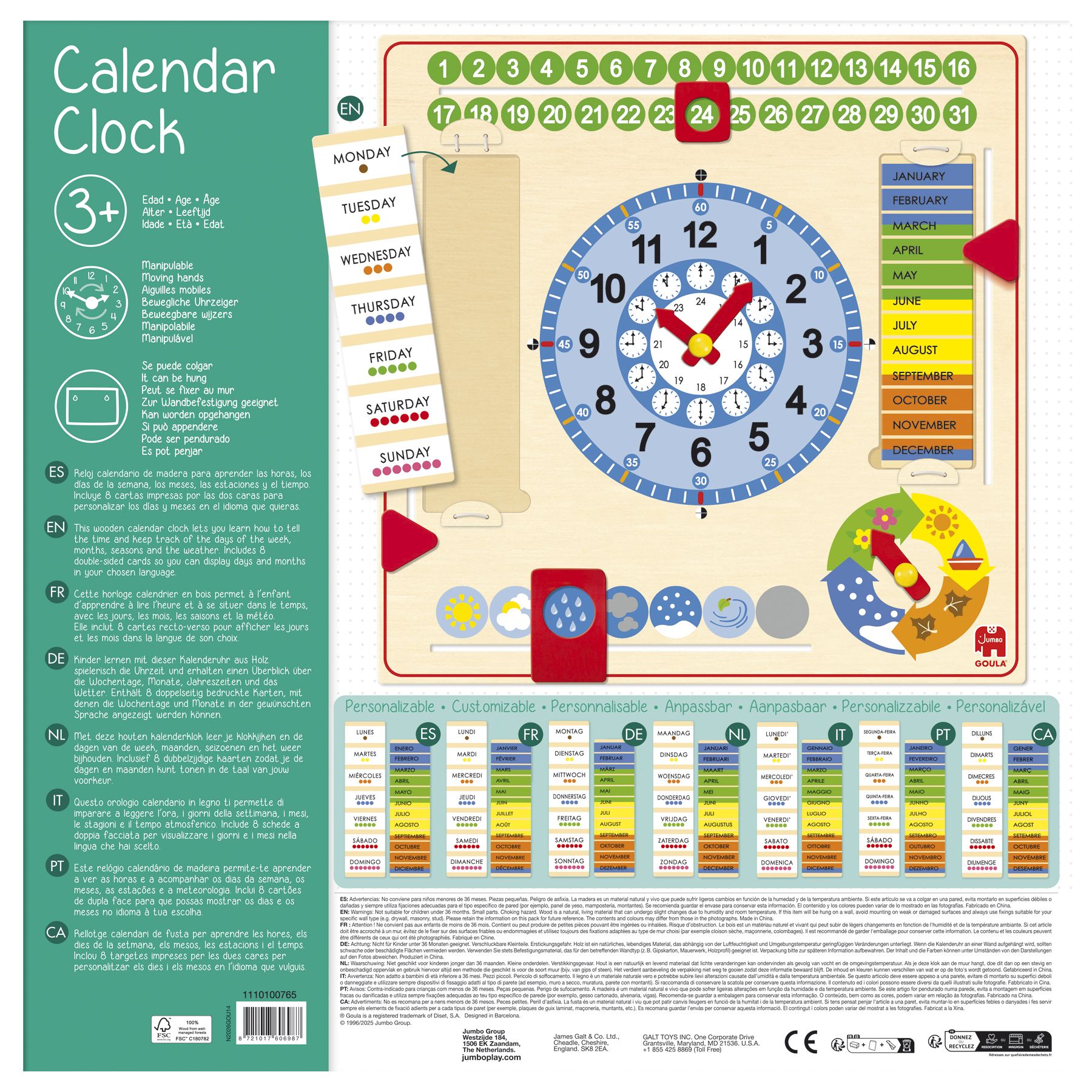 Goula Calendar Clock, Houten Kalenderklok
