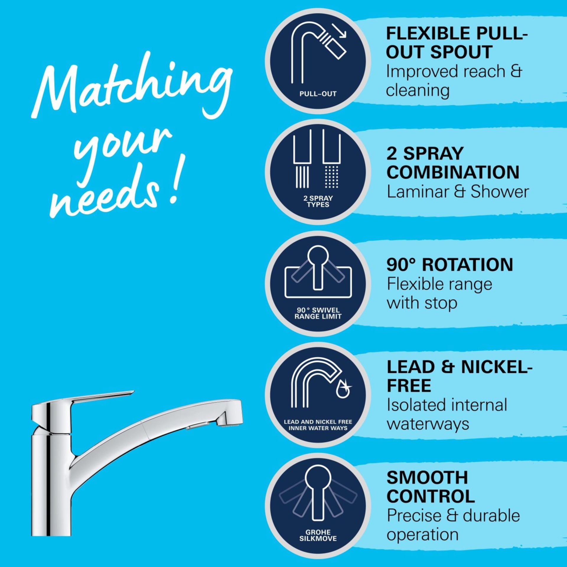 GROHE Start Keukenmengkraan Laag Pull-Out Dual Spray - Quickfix - Chroom