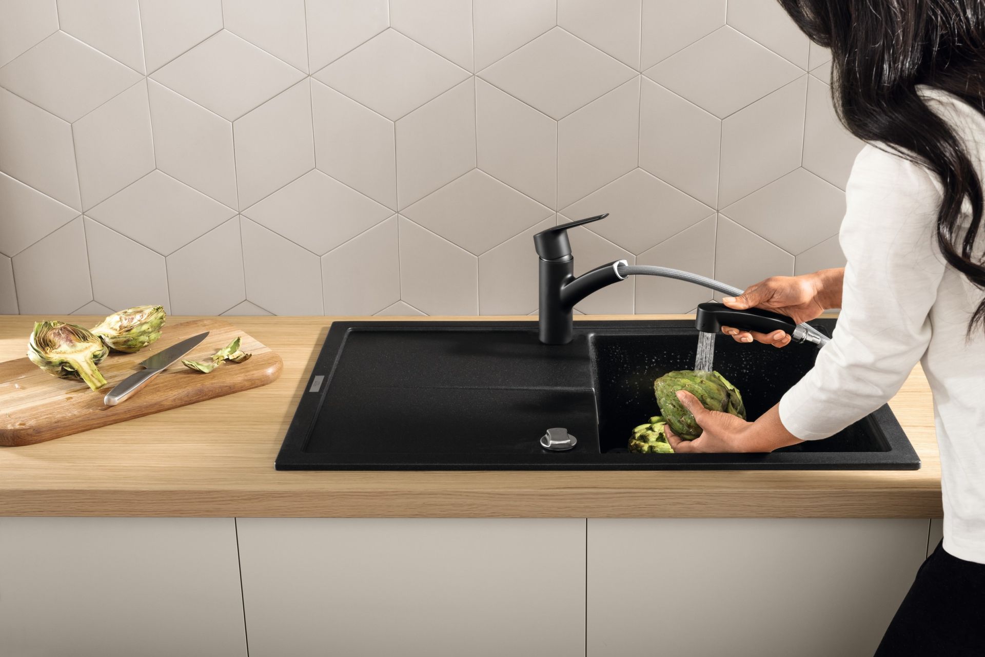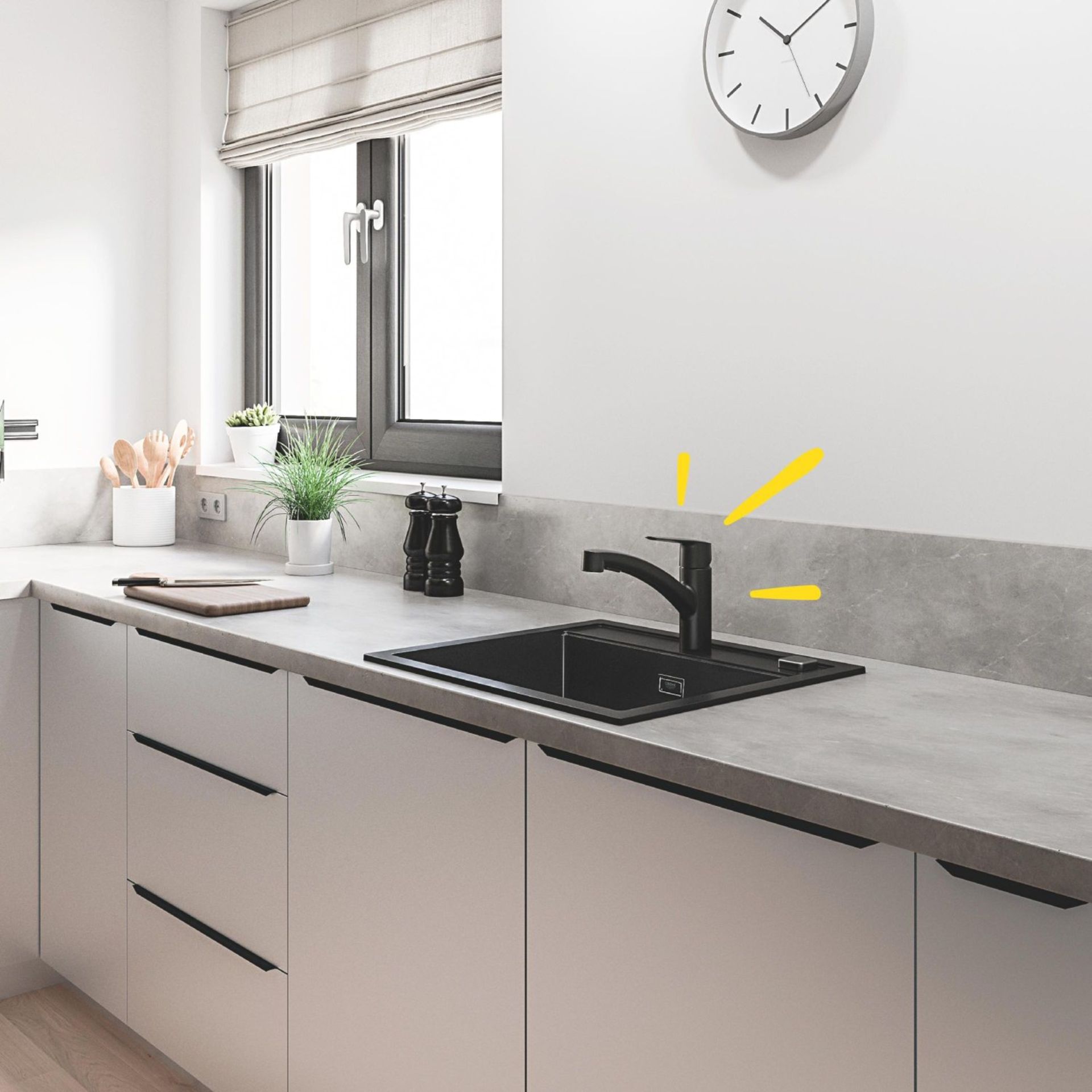 Surprisingly easy! Deze GROHE QuickFix Start eengreeps wastafelmengkraan is de perfecte manier om met gemak een nieuwe stijl en verbeterde functie in je keuken te brengen. Onze QuickFix bestseller is vernieuwd om te voldoen aan de eisen van moderne keukens met een slank, eigentijds profiel en meer gebruikscomfort. De lage uitloop heeft een sproeikop met twee straalsoorten die je maximale bewegingsvrijheid geeft en met één druk op de knop schakelt tussen een spatvrije laminaire straal en een krachtige straal. Of je nu groenten spoelt, pannen vult of de gootsteen schoonmaakt, met deze handige functie is het allemaal mogelijk. De kraan keert automatisch terug naar de laminaire straal als hij wordt uitgezet.