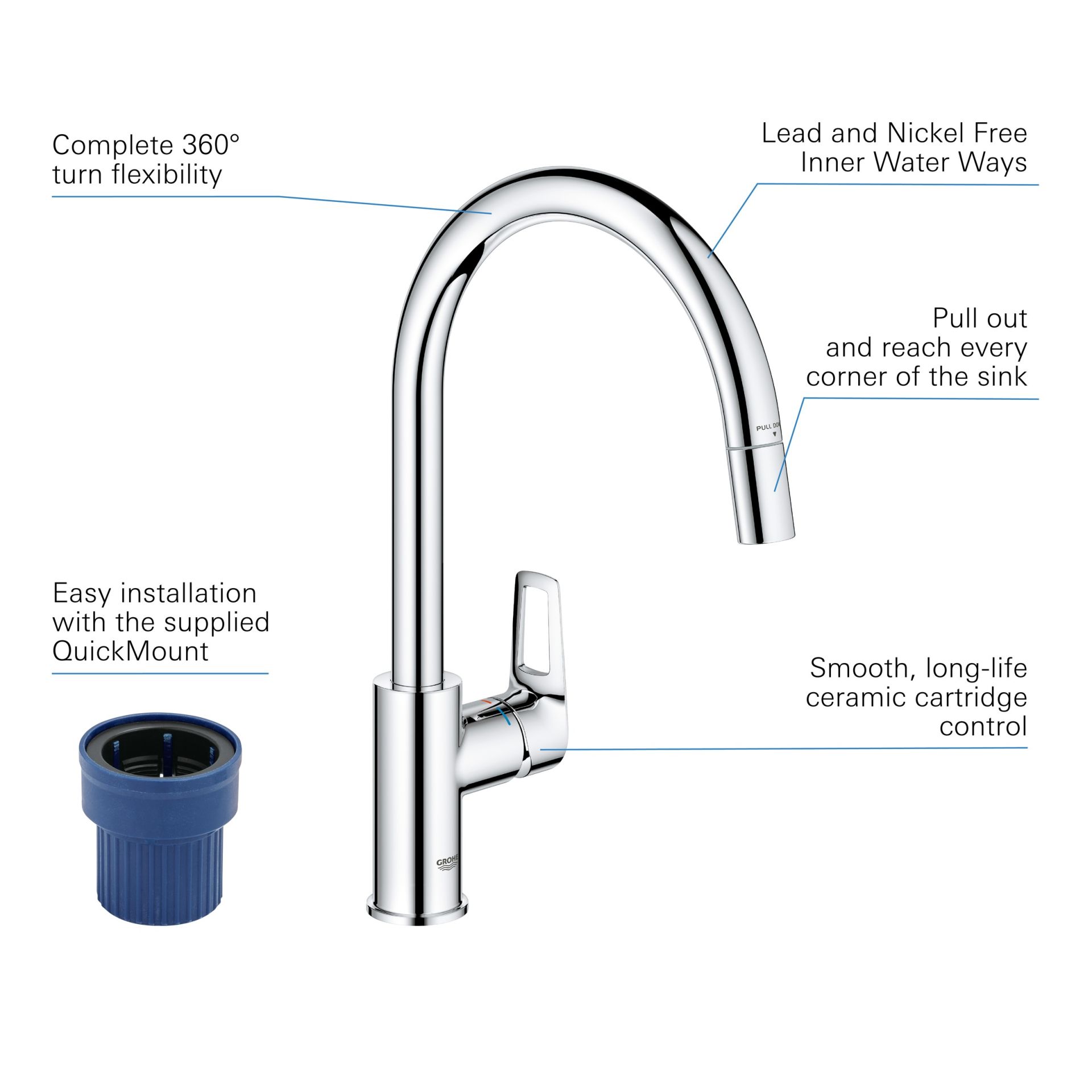 GROHE Start Loop Keukenmengkraan C-Uitloop - Mousseur - Quickfix - Chroom