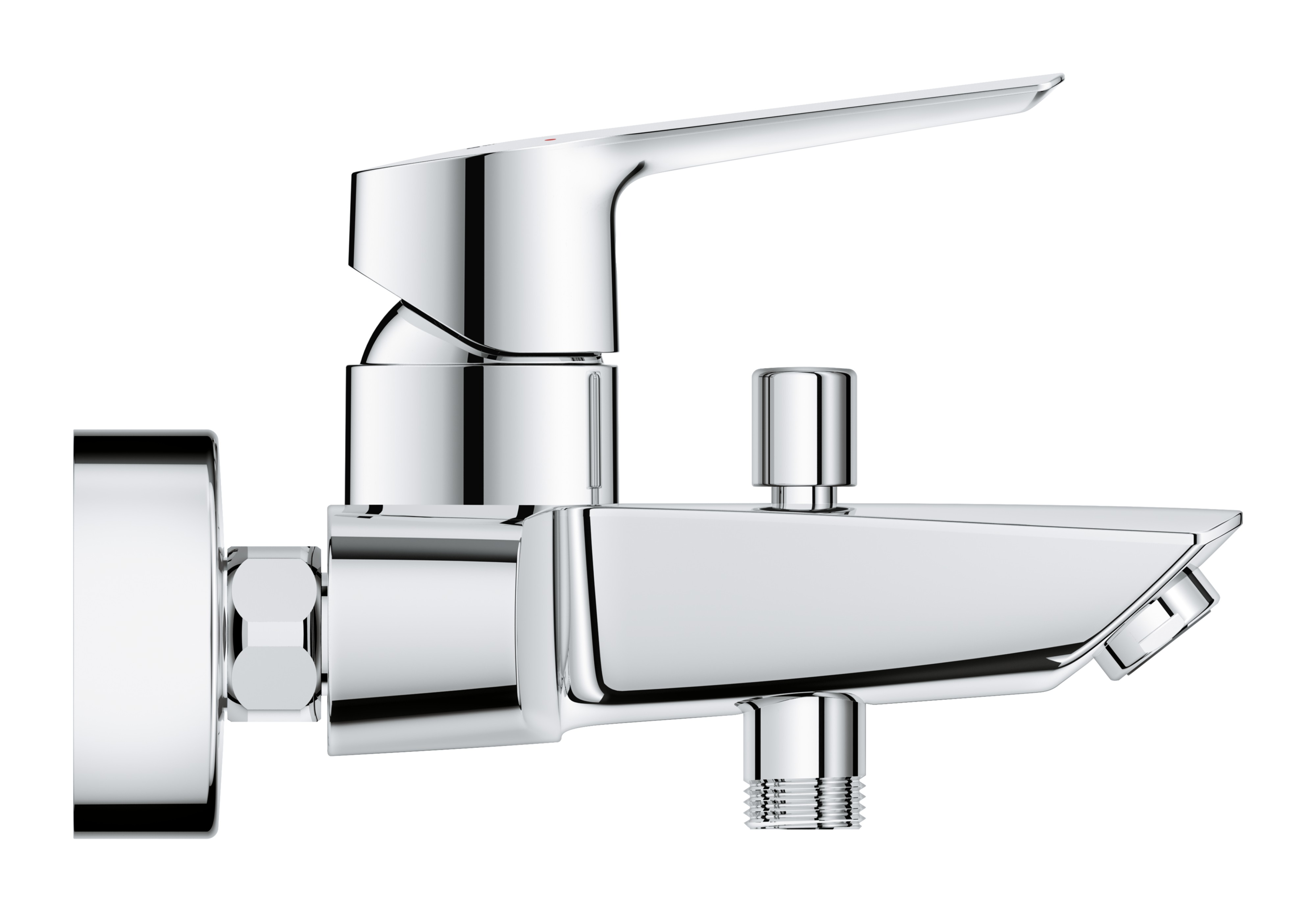 De vernieuwde GROHE Start badkraan is ontworpen voor een wandmontage en geeft jouw bad een luxe uitstraling. Deze bestseller biedt nog meer comfort tijdens het baden. De kraan is voorzien van een GROHE SilkMove cartouche en een slanke metalen hendel voor een intuïtieve en soepele bediening. Met de instelbare debietbegrenzer wordt je waterverbruik aanzienlijk verminderd, terwijl je via de temperatuurbegrenzer op je energiekosten bespaart. Je hoeft alleen nog maar een GROHE handdouche toe te voegen en je ultieme badbeleving is compleet. Via de automatische omstelling wissel je eenvoudig tussen de baduitloop en de handdouche, terwijl de geïntegreerde terugslagklep in de douche-uitloop voorkomt dat het afvalwater terug kan stromen. De duurzame GROHE StarLight chroomafwerking omhult deze GROHE Start badkraan met een heldere glans en beschermt optimaal tegen krasvorming.
