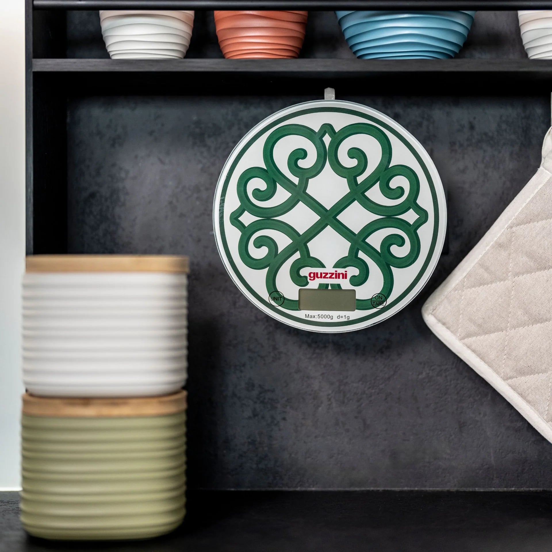 Guzzini Keukenweegschaal Harmonia Forest Green 19.5cm - Digitaal - tot 5kg - op 1g - Glas