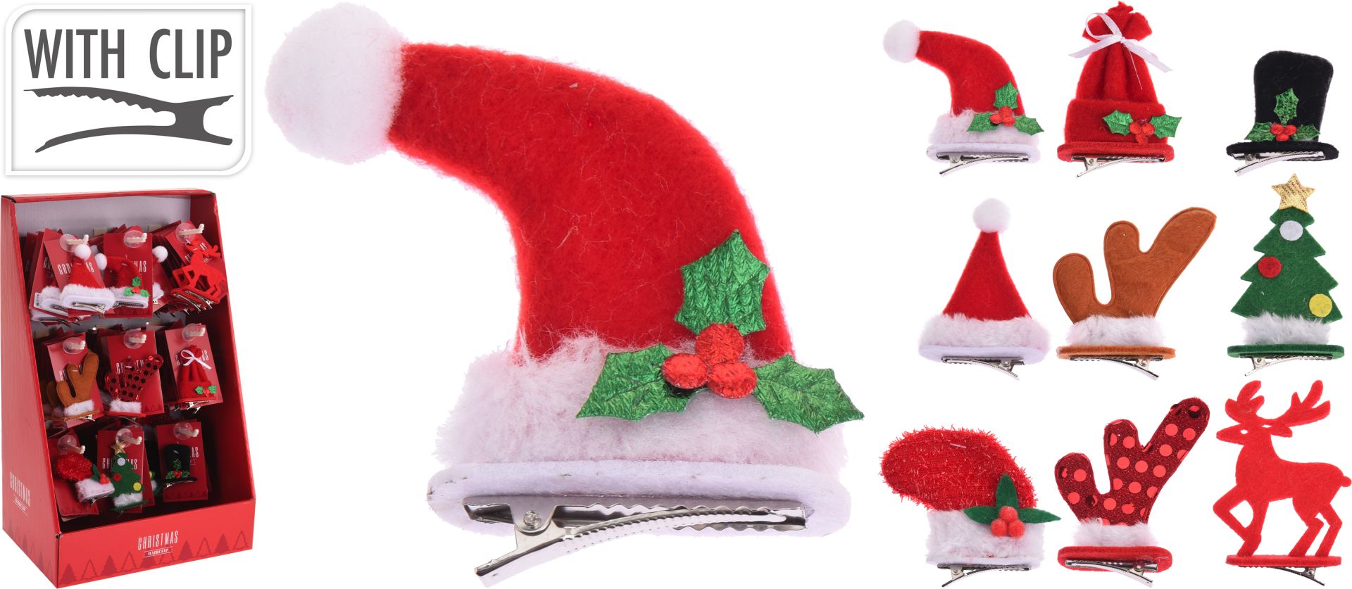 Haarclip Kerst 5x9 cm assorti - prijs per stuk