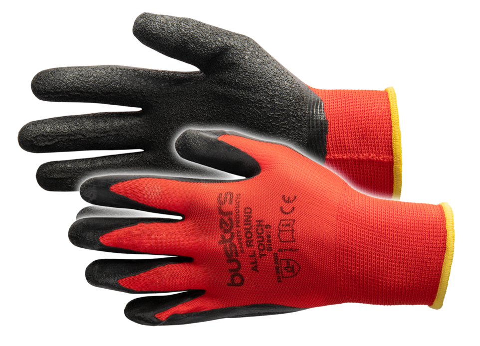 Handschoen Allround - nauwaansluitend maat 10 - rode Handrug en zwarte Palm