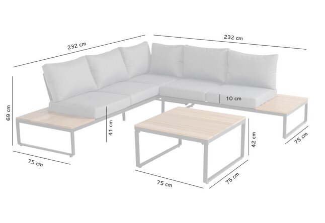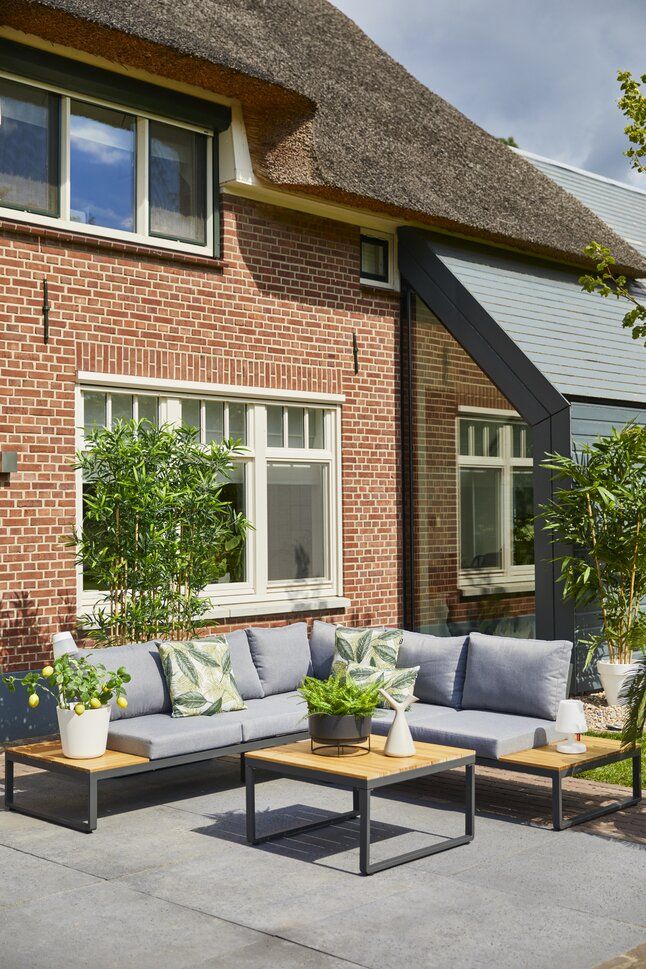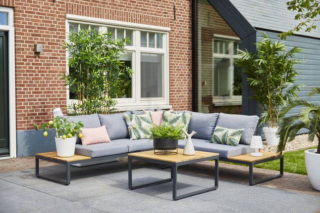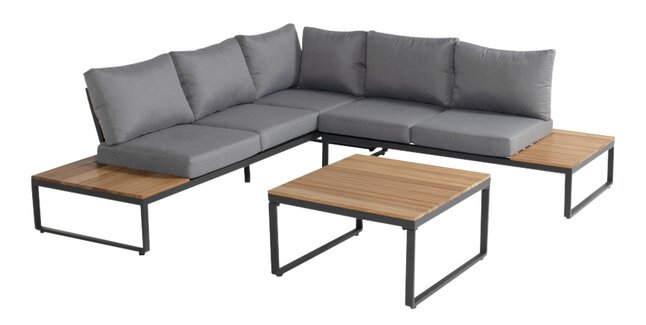 Hartman Loungeset Madeira Alu/Hout Hoekzetel + Tafel met Antraciet Kussens