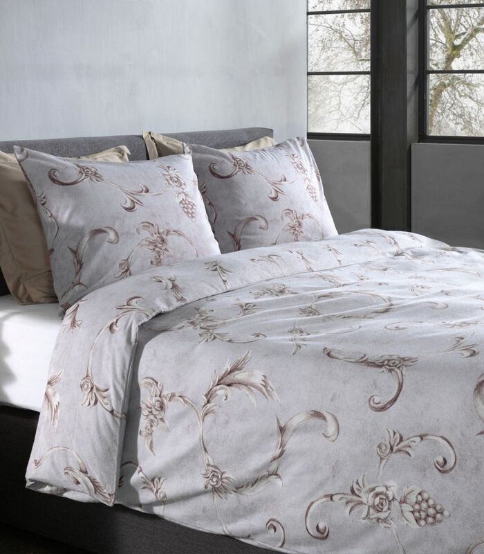Het Dekbedovertrek Heckett Lane Rosalie Flanel – Grey brengt een vleugje klassieke schoonheid naar je slaapkamer. De lichtgrijze tot zacht taupe achtergrond doet denken aan de tijdloze pracht van marmer en de sierlijke druivenranken met trossen druiven maken deze pracht helemaal af. Het voelt alsof je slaapt onder een schilderij dat de grandeur en de rijkdom van het Oude Rome vastlegt. Met dit dekbedovertrek creëer je een slaapkamer die tijdloze elegantie en rust uitstraalt. Dit dekbedovertrek is de perfecte manier om jezelf te verwennen en elke nacht in luxe te baden!