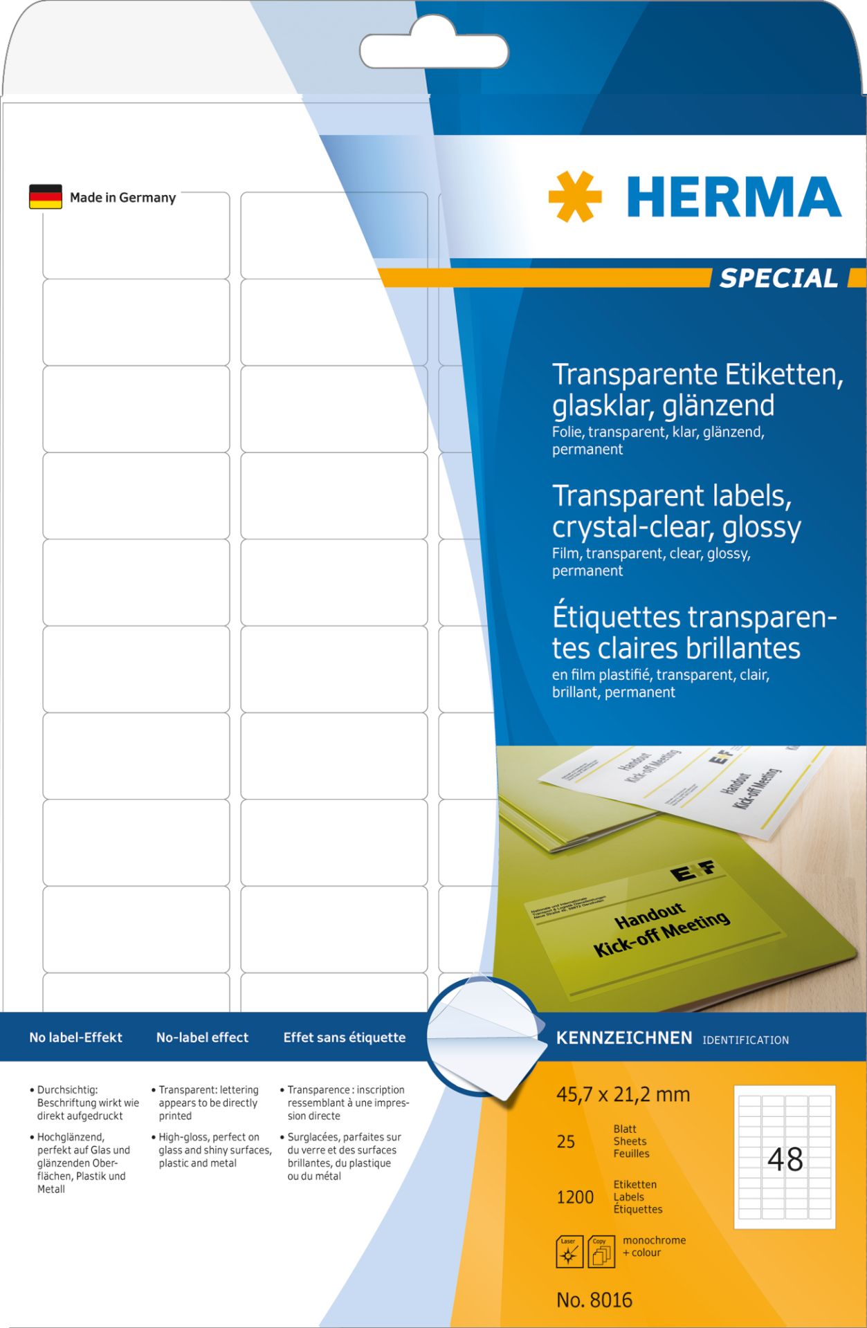 Herma Etiketten A4 - 25 stuks 45.7x21mm - Transparant Glanzend Helder