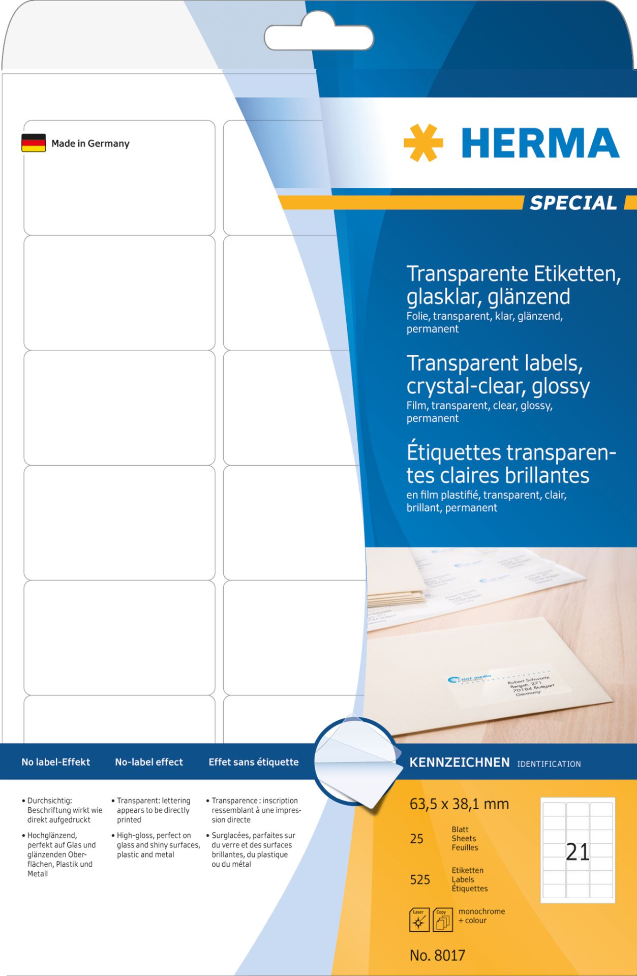 Herma Etiketten A4 - 25 stuks 63.5x38mm - Transparant Glanzend Helder