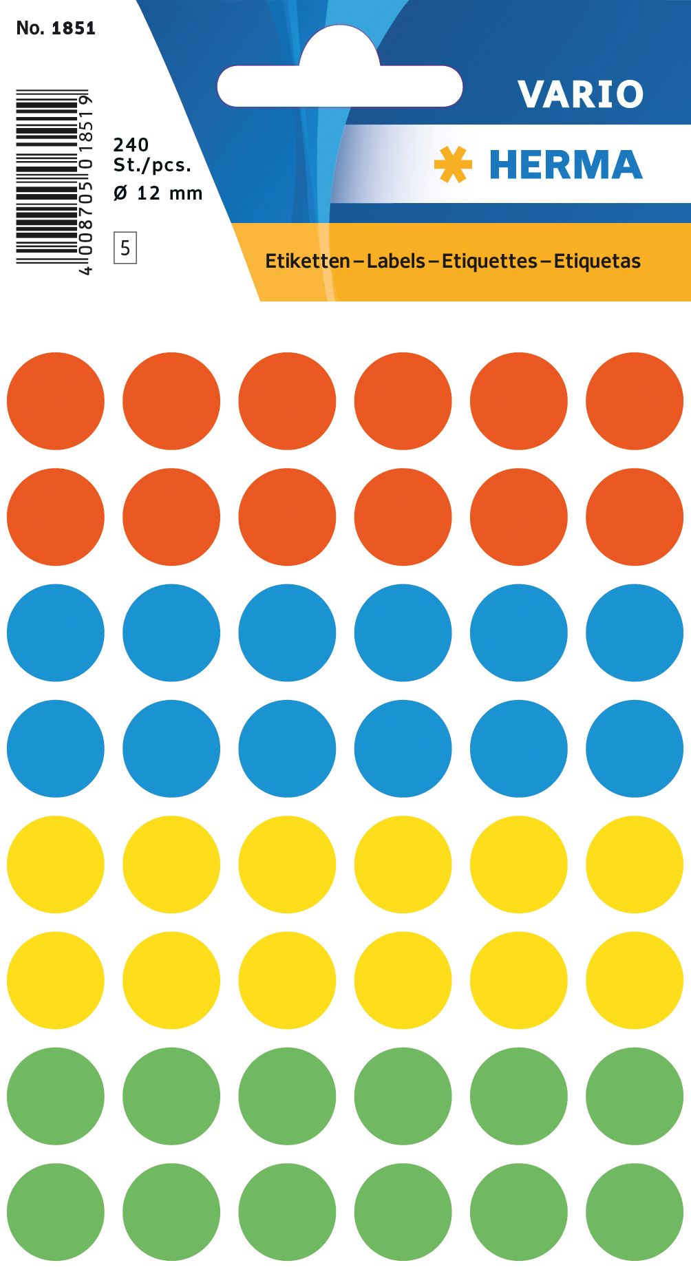 Herma Vario Universele Etiket Rond 12mm - Kleur assorti - Prijs per Stuk