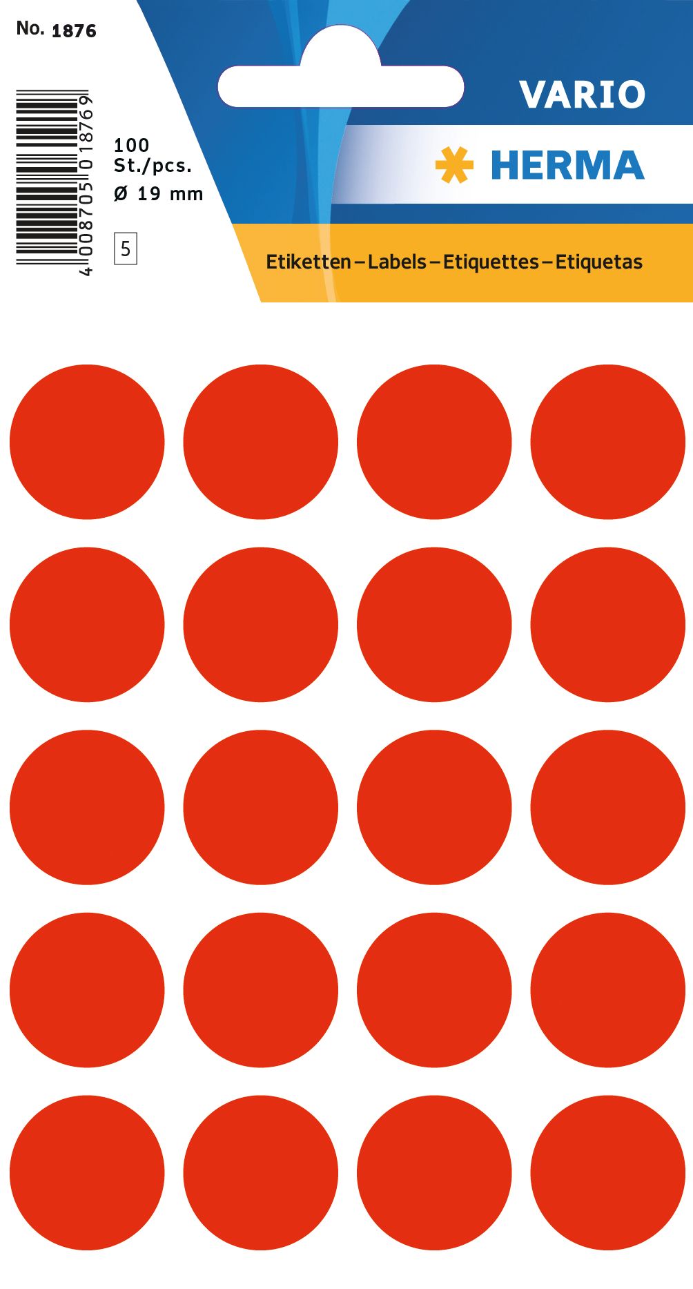 Herma Vario Universele Etiket Rond 19mm - Fluo Rood