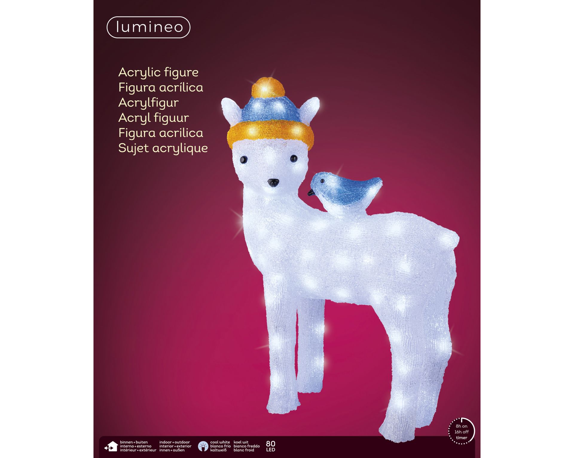 Hert met Muts & Vogel LED Outdoor Wit 47.5x19x58 cm - 80 leds - Koel Wit
