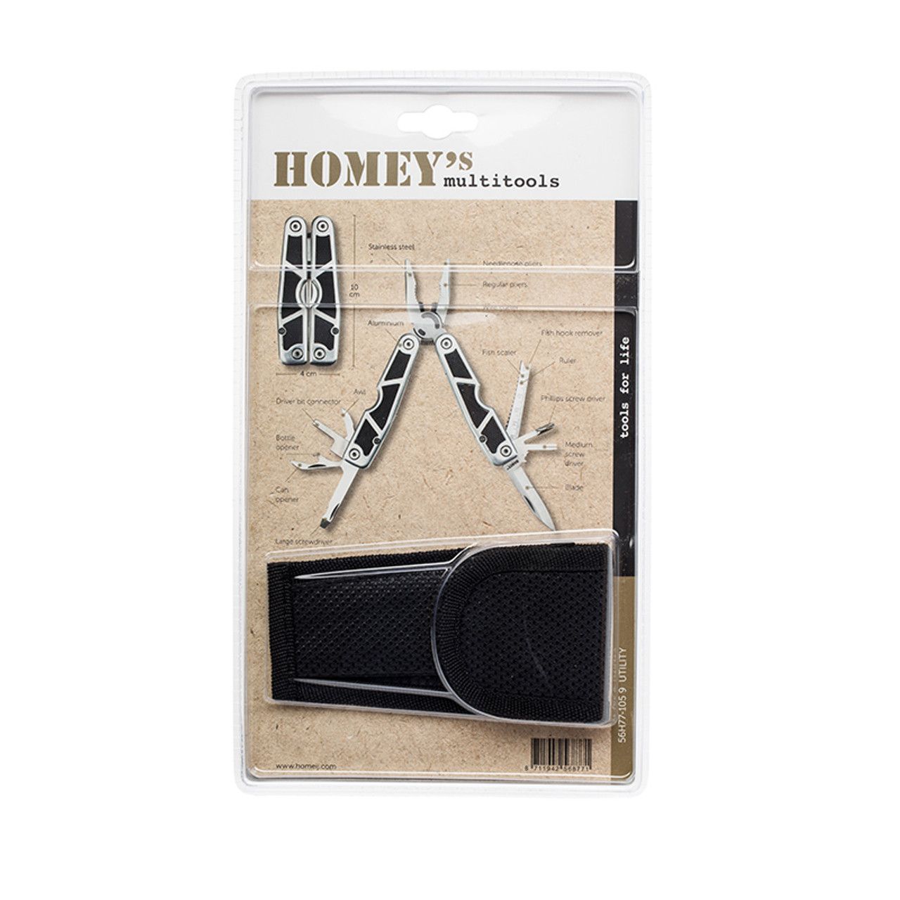 Homey's Multitool 14 Functies RVS/Aluminium - Zwart - met Etui