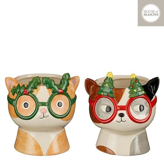 House of Seasons Bloempot Funny Kat - 13x12.5x15.5 cm - assorti - prijs per stuk
