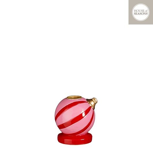 House of Seasons Kandelaar Kerstbal - 7.5x7x8 cm - Roze Gestreept