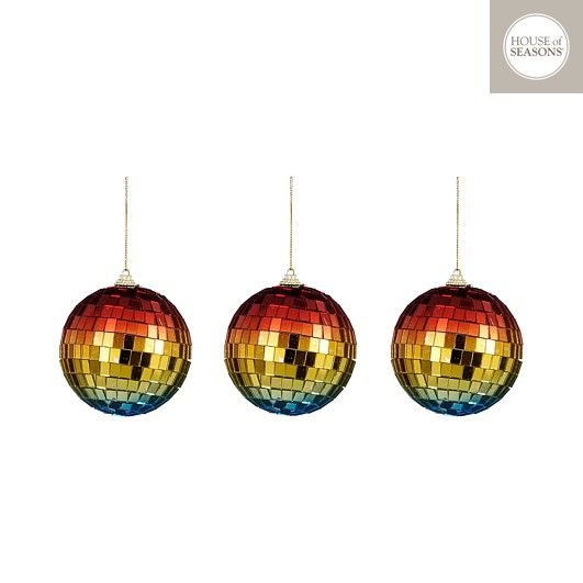 House of Seasons Kerstbal Foam Spiegel Regenboog 8cm set 3 stuks