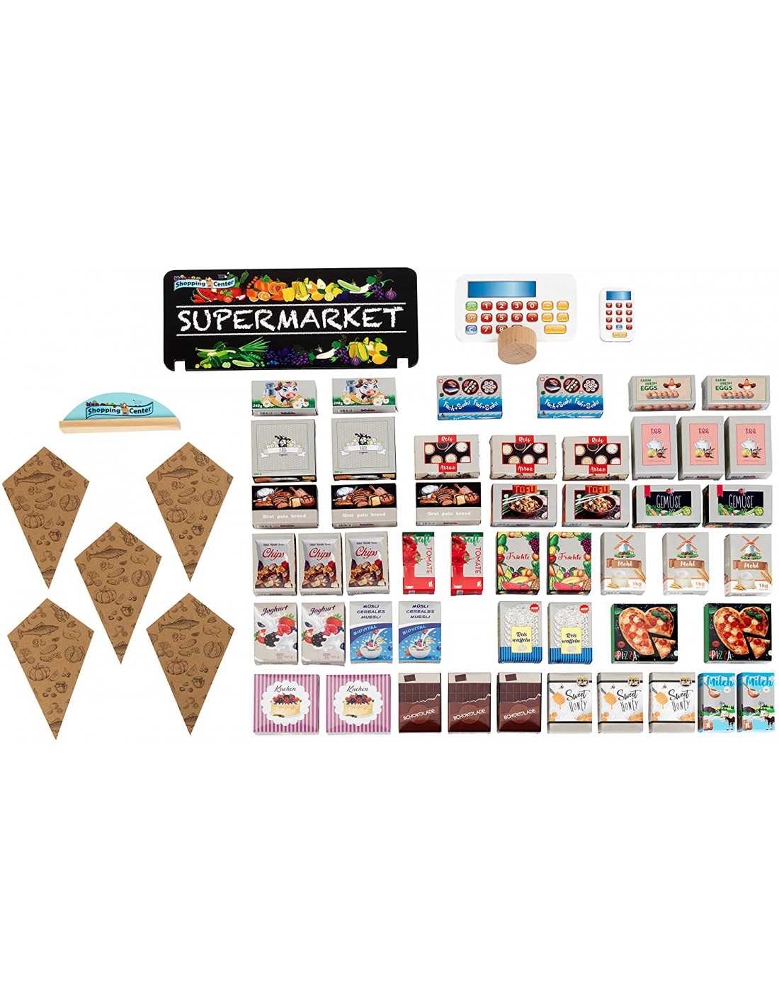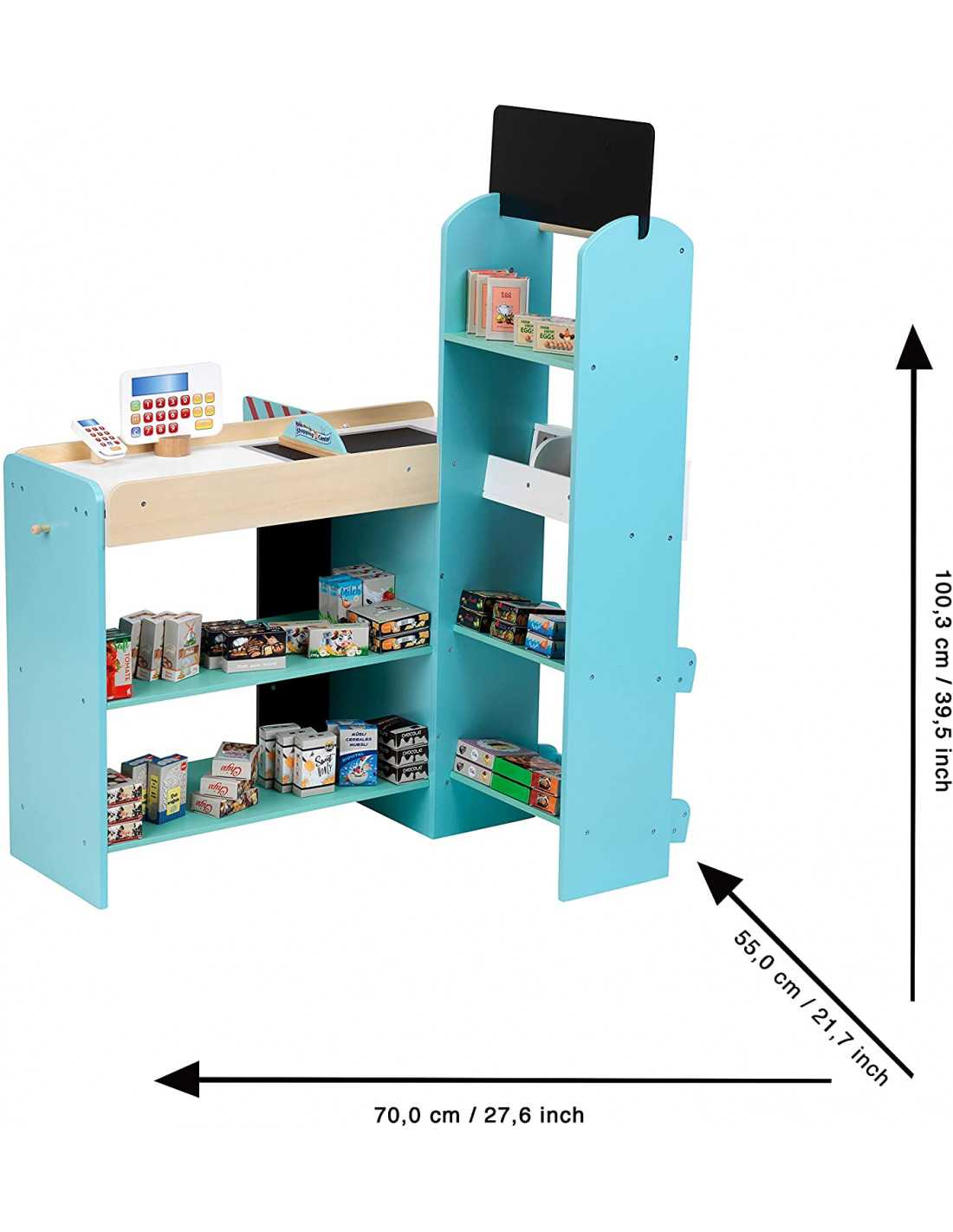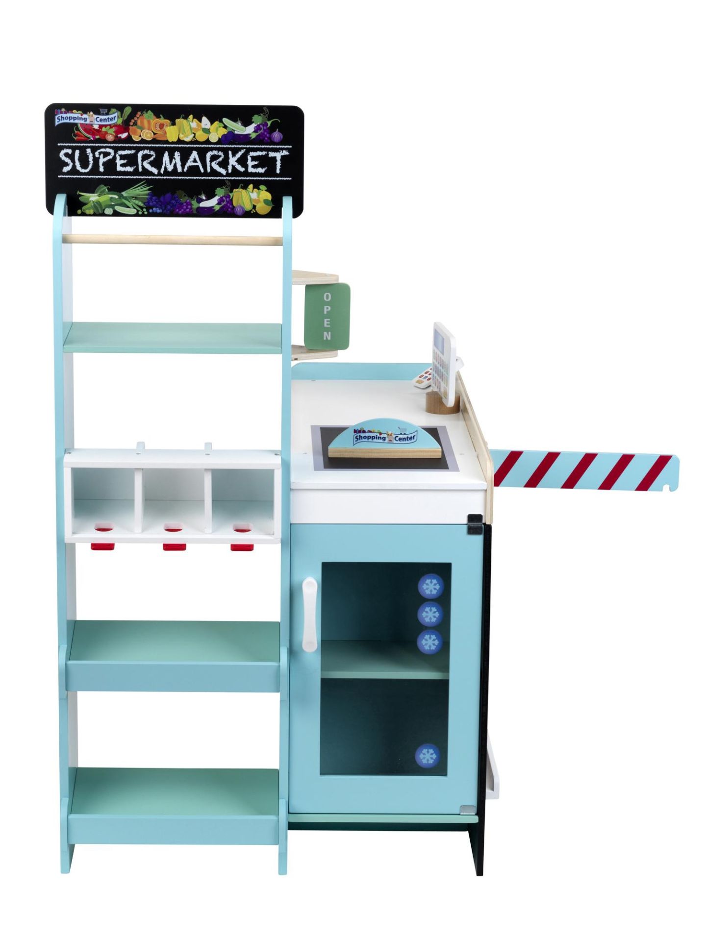 Houten Supermarkt, Houten winkel met 55 accessoires, 70x55x100 cm