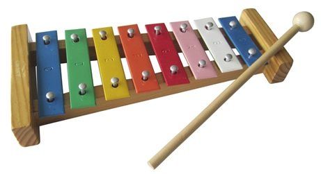 Houten Xylofoon 8 Metalen Notenstaafjes 12X25.50CM, met Stokje