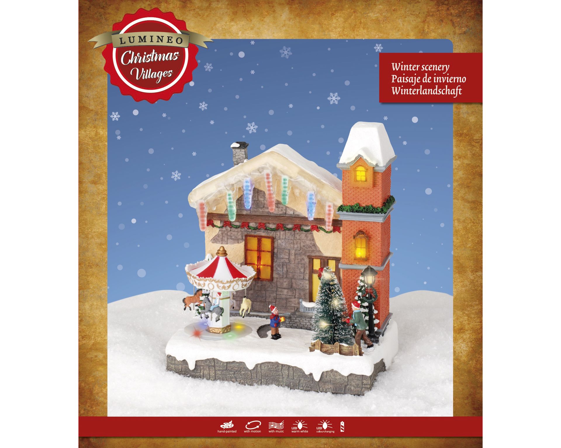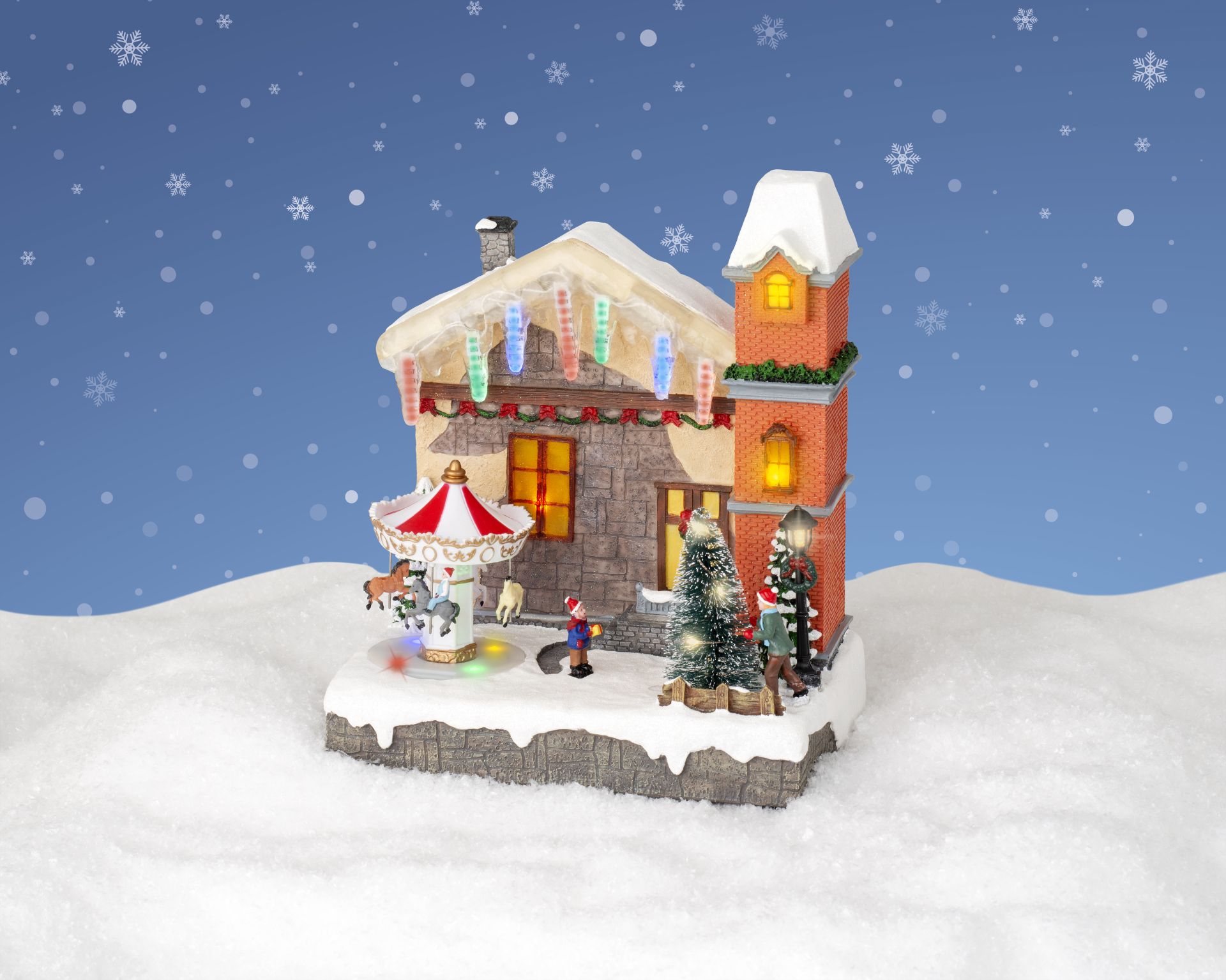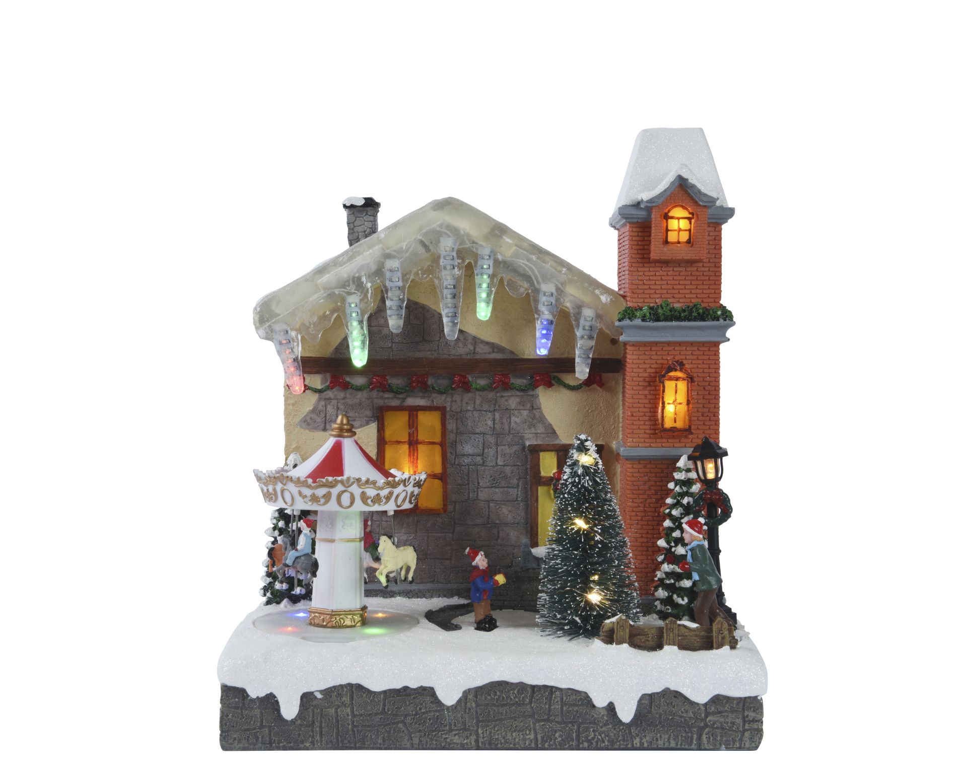 Huis met Draaimolen & Kerstboom LED 17x26x29.5 cm - 68 leds
