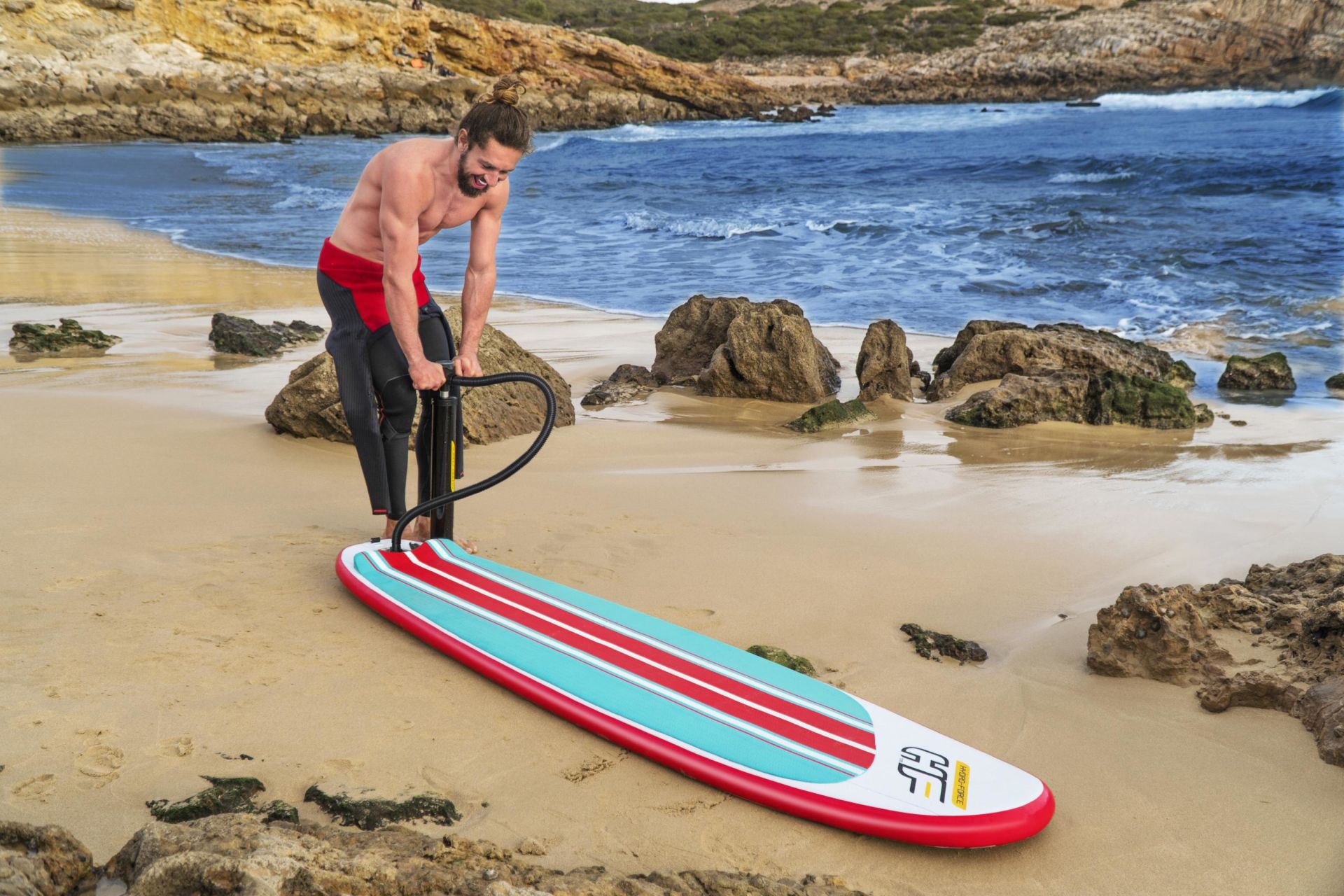 - Inclusief leash, pomp, rugtas en reparatieset